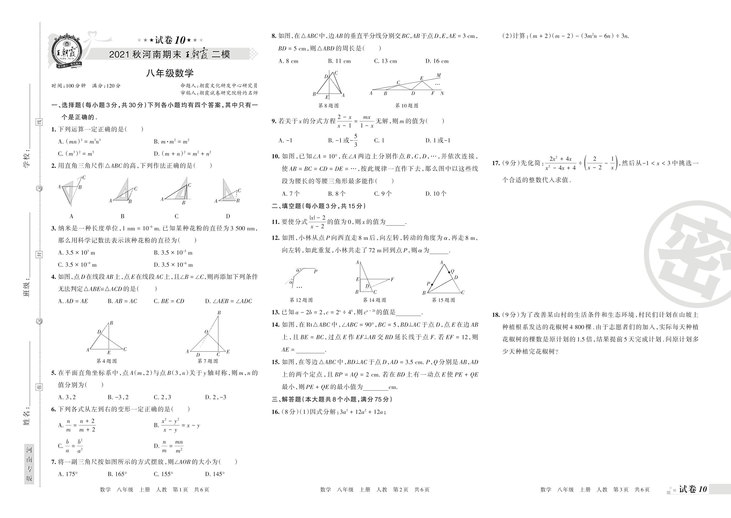 王朝霞期末模拟卷八年级上册数学(人教版)_R211225105741335【10】