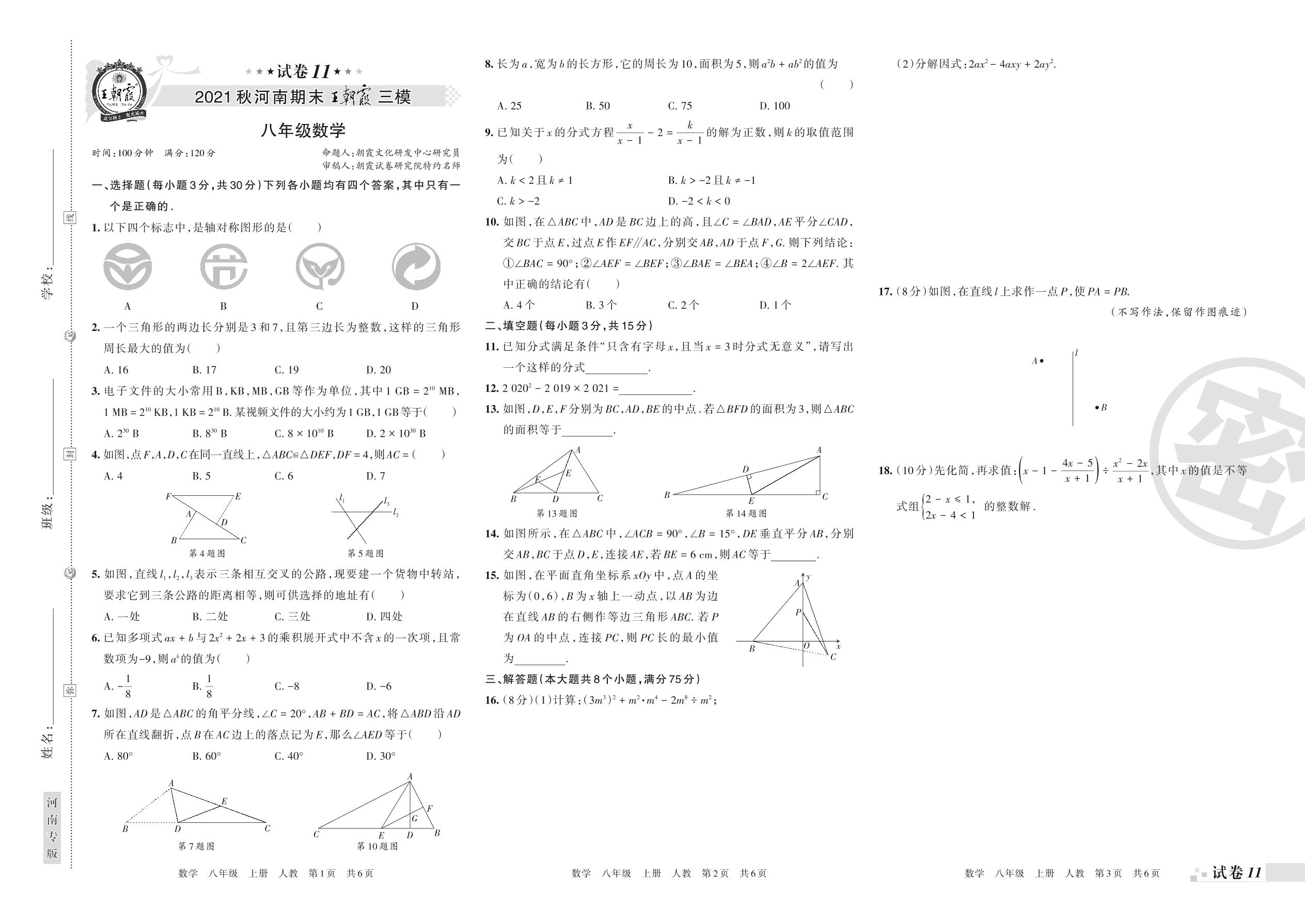 王朝霞期末模拟卷八年级上册数学(人教版)_R211225105741948【11】