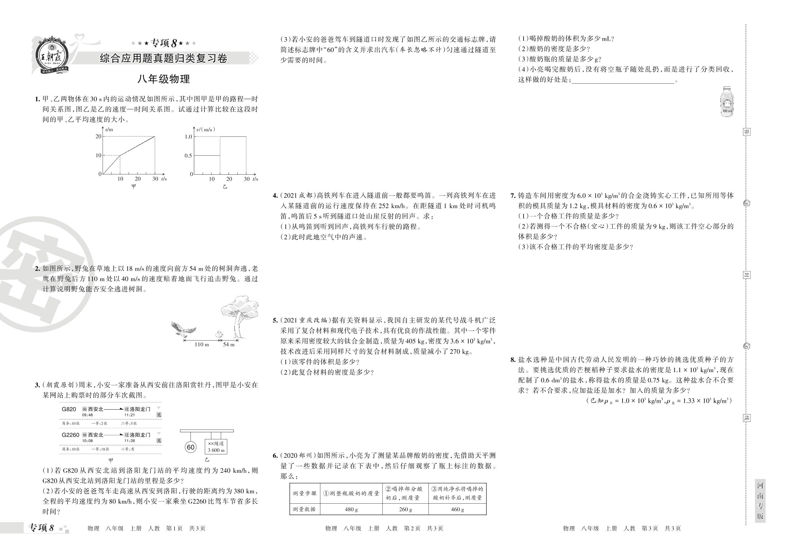 王朝霞期末专项卷——综合应用题真题归类复习卷八年级上册物理(人教版)_R211225110115279【8】