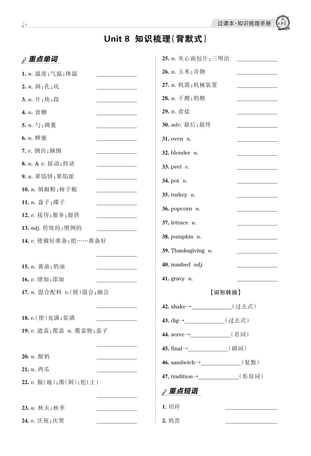王朝霞期末过课本——Unit 8 知识梳理(背默式)八年级上册英语(人教版)_R211225110541116【8】