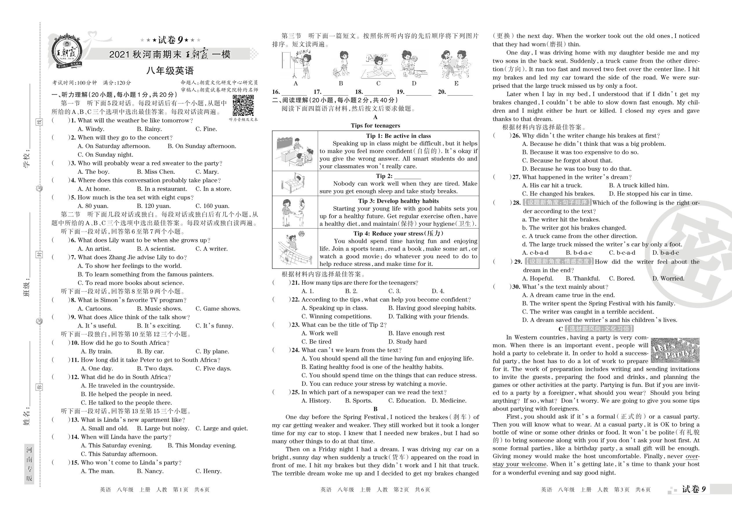 王朝霞期末模拟卷八年级上册英语(人教版)_R211225110543396【9】