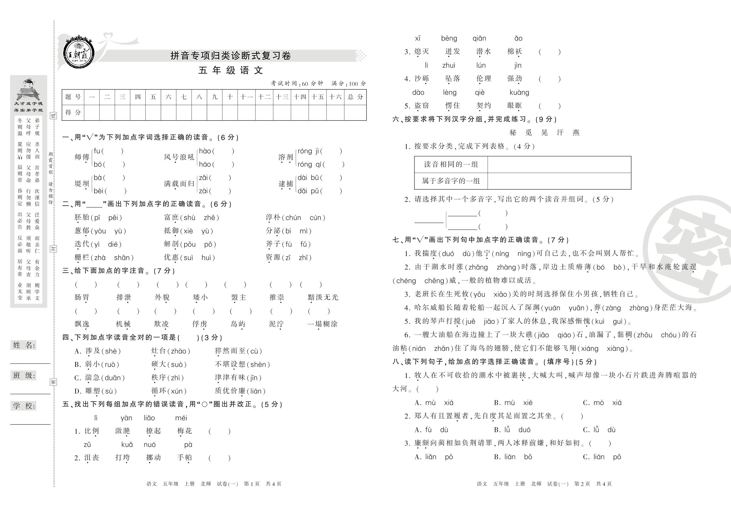 王朝霞期末专项卷五年级上册语文(北师版)_R210801220354【1】