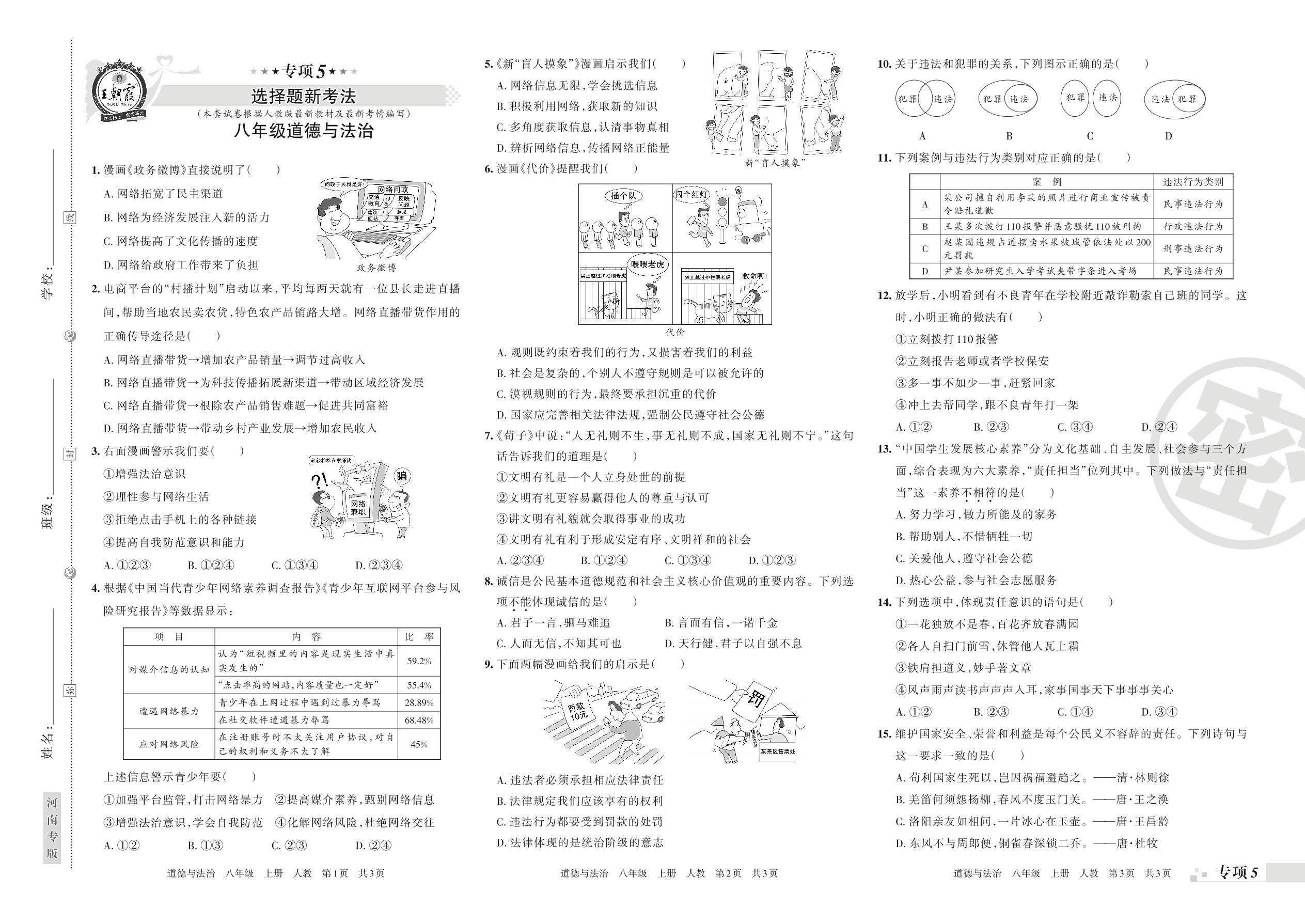 王朝霞期末专项卷——选择题新考法八年级上册道德与法治(人教版)【5】