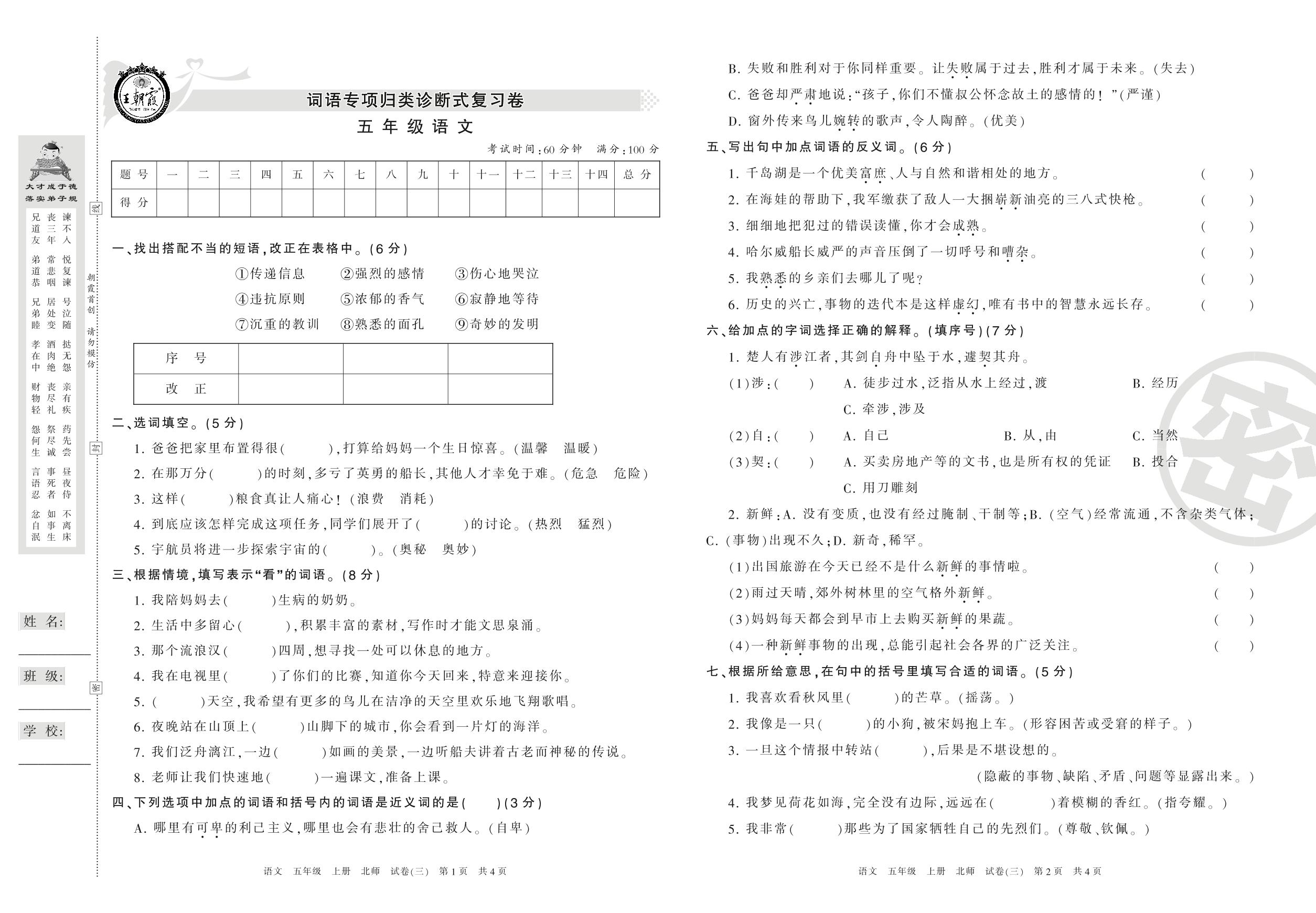 王朝霞期末专项卷五年级上册语文(北师版)_R210801220403【3】