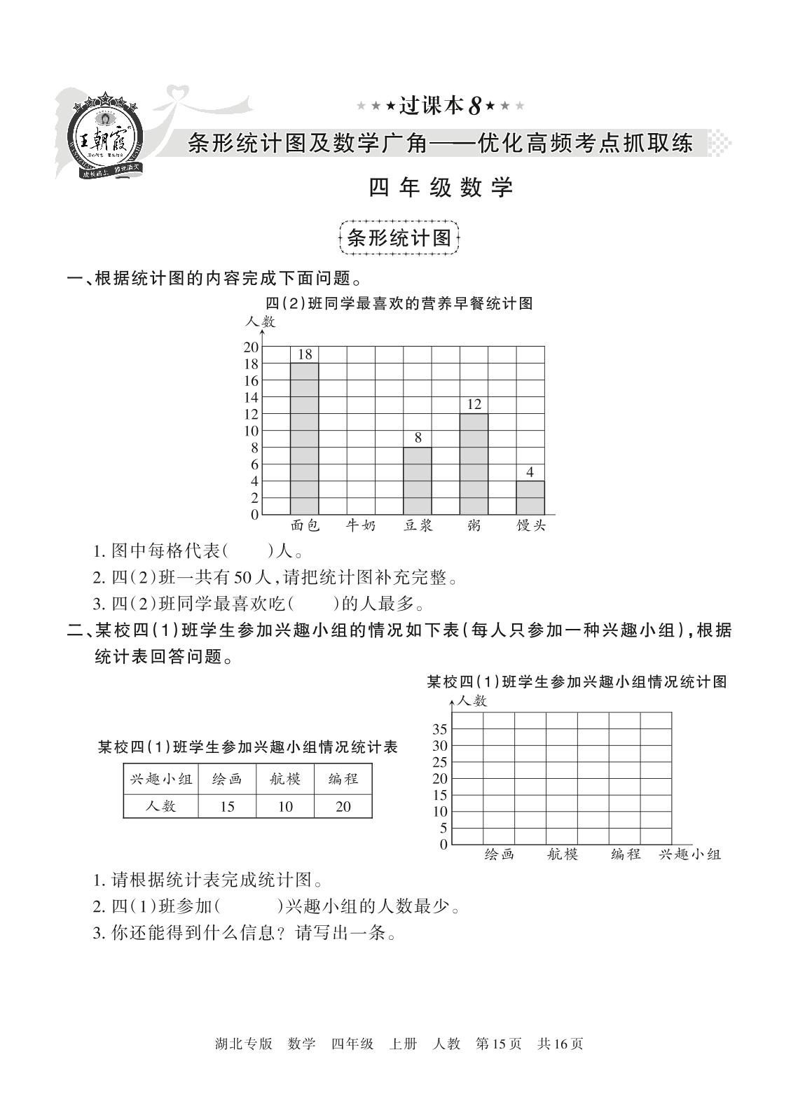 王朝霞期末过课本——条形统计图及数学广角:优化高频考点抓取练四年级上册数学人教版【8】