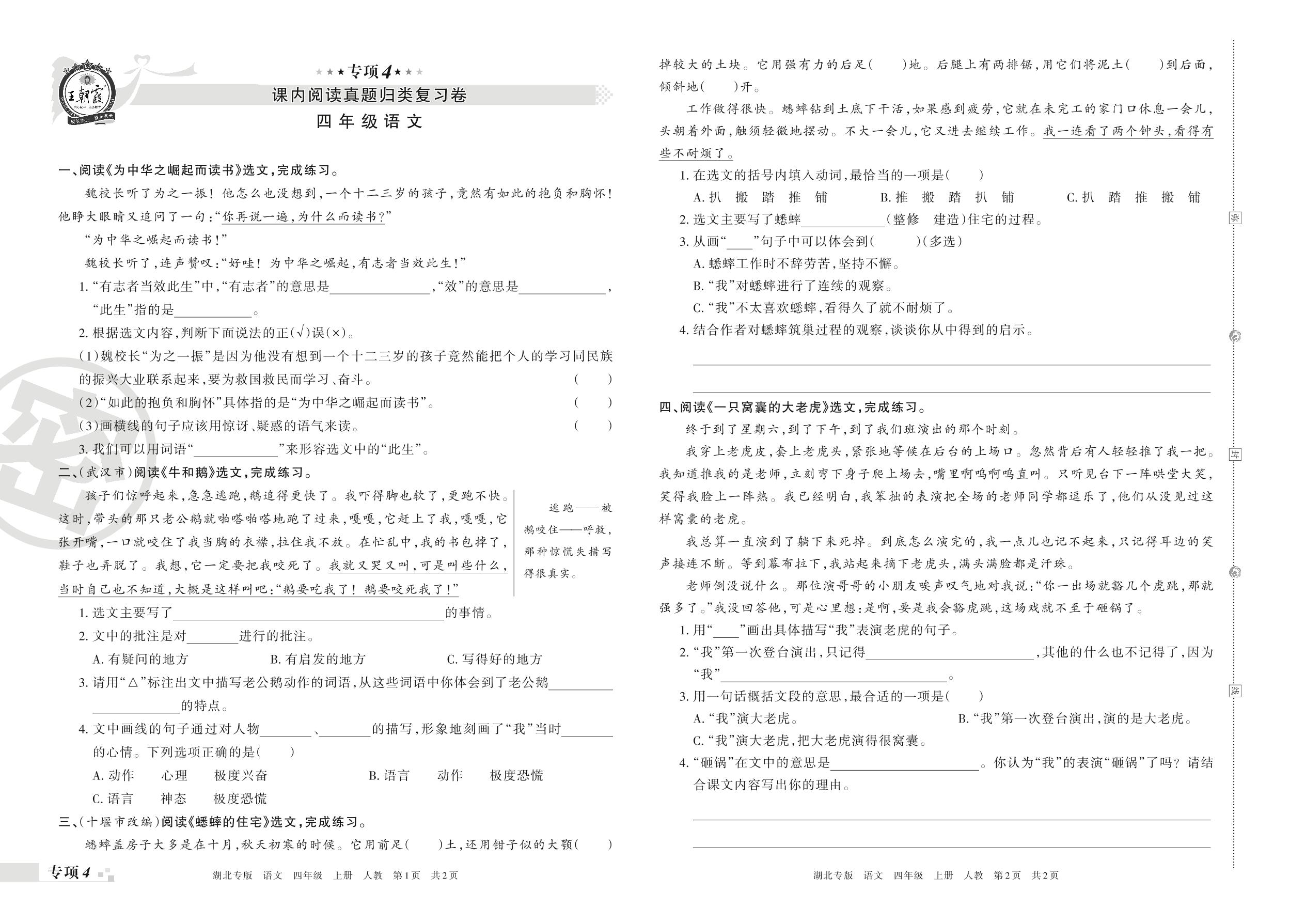王朝霞期末专项卷——课内阅读真题归类复习卷四年级上册语文(人教版)_R211225113859659【4】