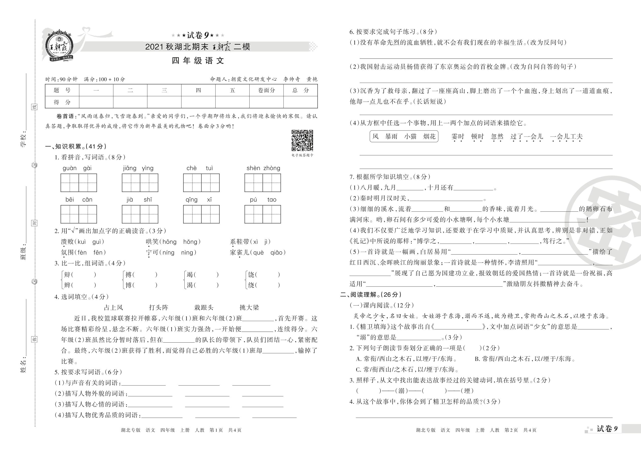 王朝霞期末模拟卷四年级上册语文(人教版)_R211225113900741【9】