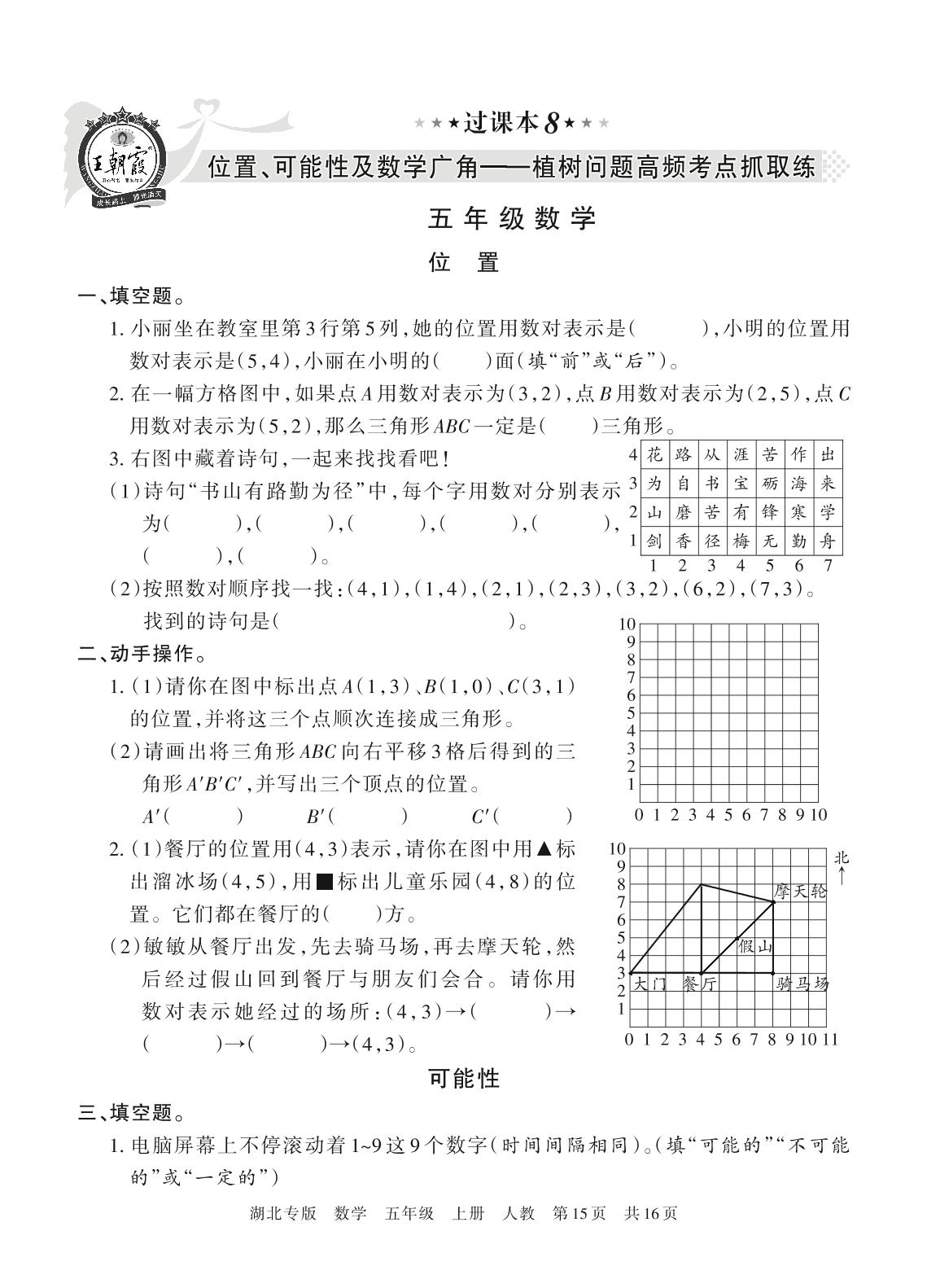 王朝霞期末过课本——位置、可能性及数学广角:植树问题高频考点抓取练五年级上册数学人教版【8】