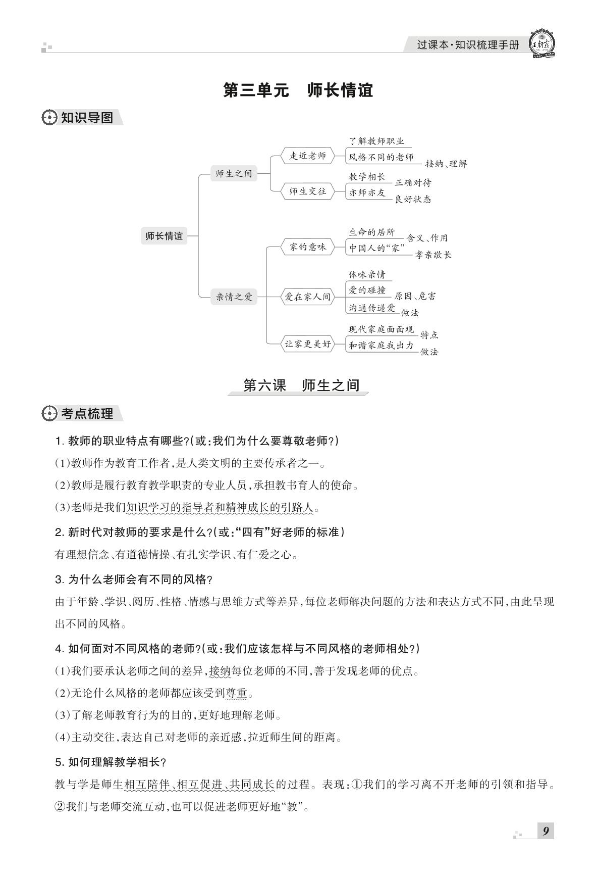 王朝霞期末知识梳理——第三单元 师长情谊七年级上册道德与法治(人教版)_R211225134504519【3】