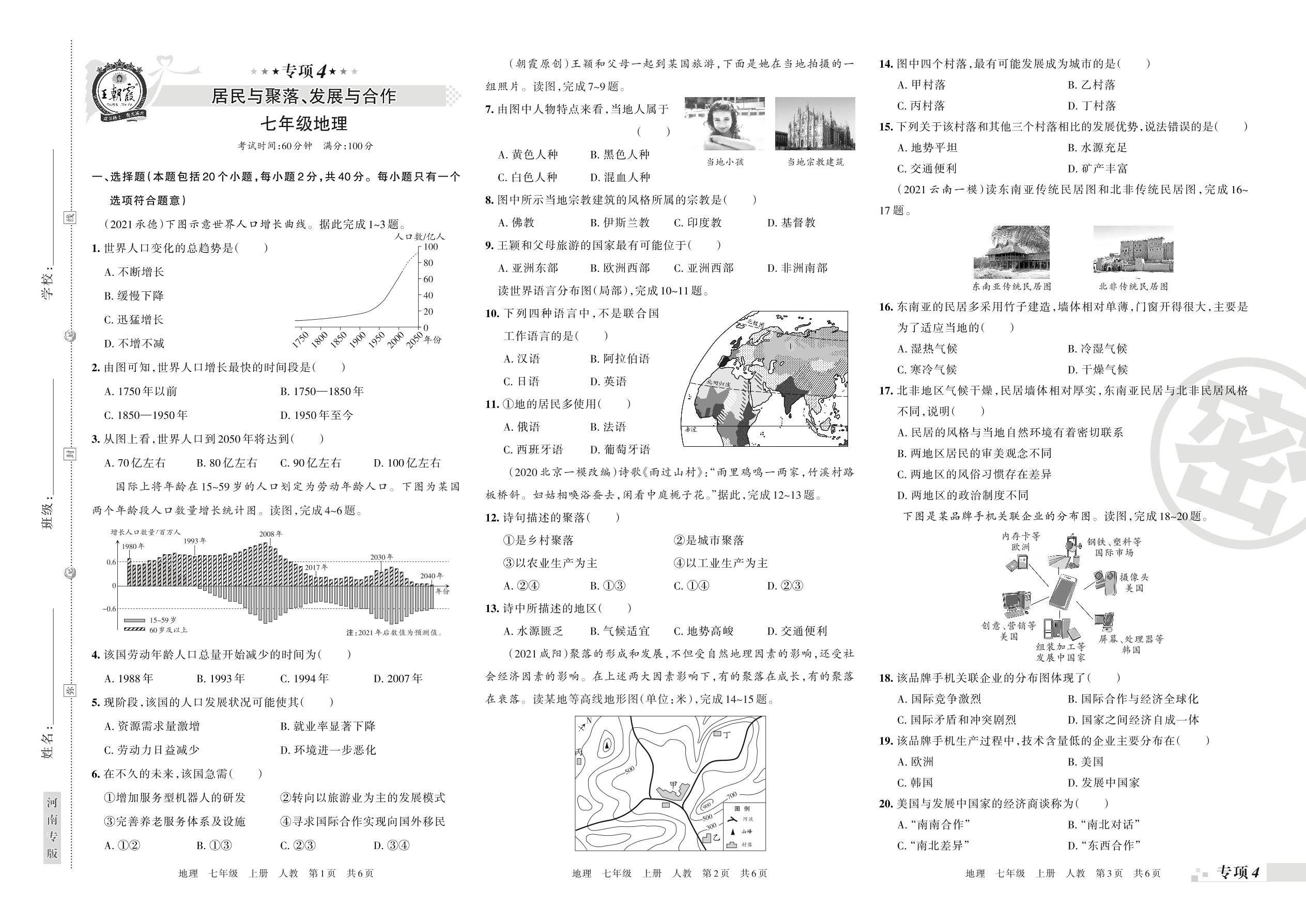 王朝霞期末专项卷——居民与聚落、发展与合作七年级上册地理(人教版)_R211225134800301【4】