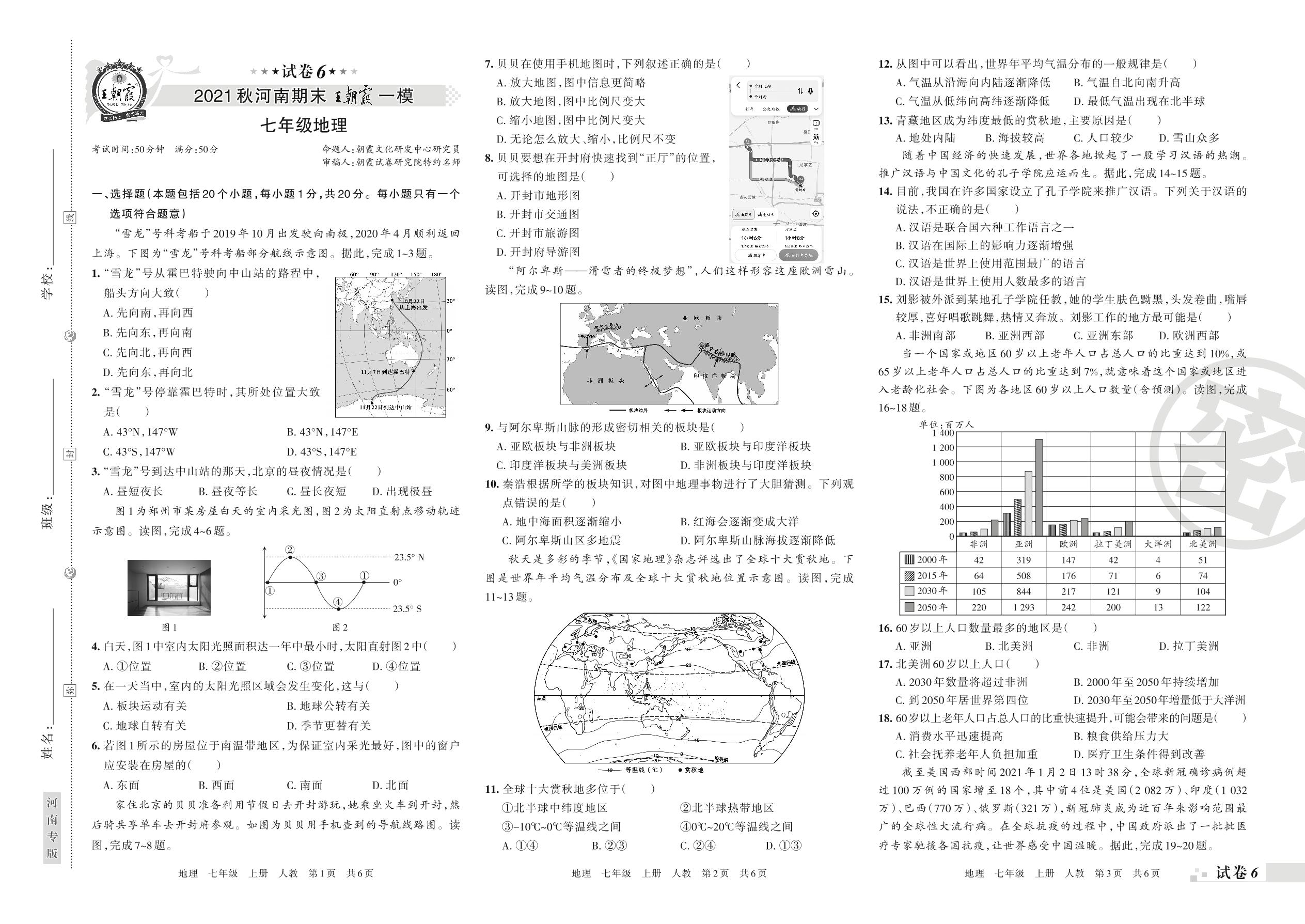 王朝霞期末模拟卷七年级上册地理(人教版)【6】