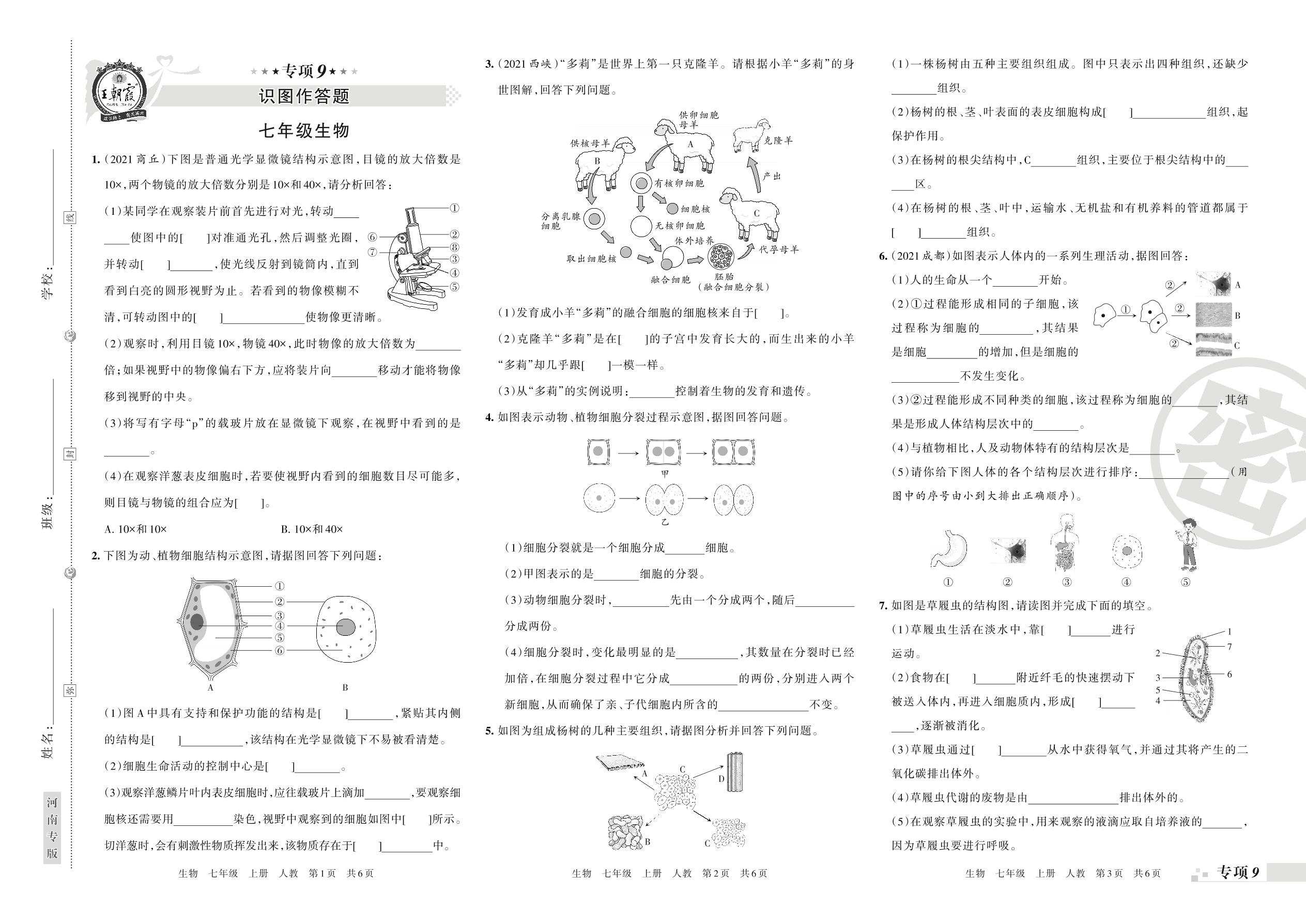 王朝霞期末专项卷——识图作答题七年级上册生物(人教版)【9】