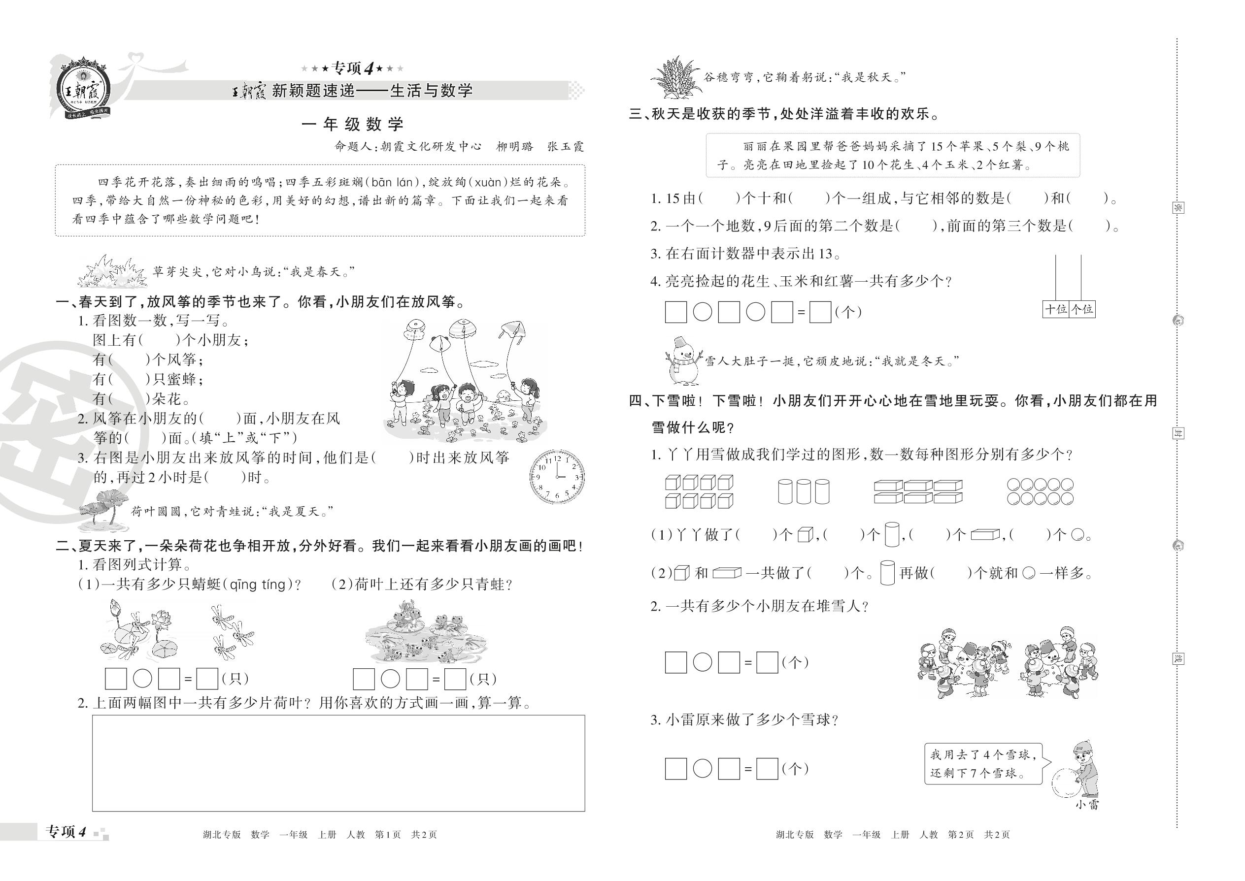 王朝霞期末专项卷——新颖题速递:生活与数学一年级上册数学人教版【4】