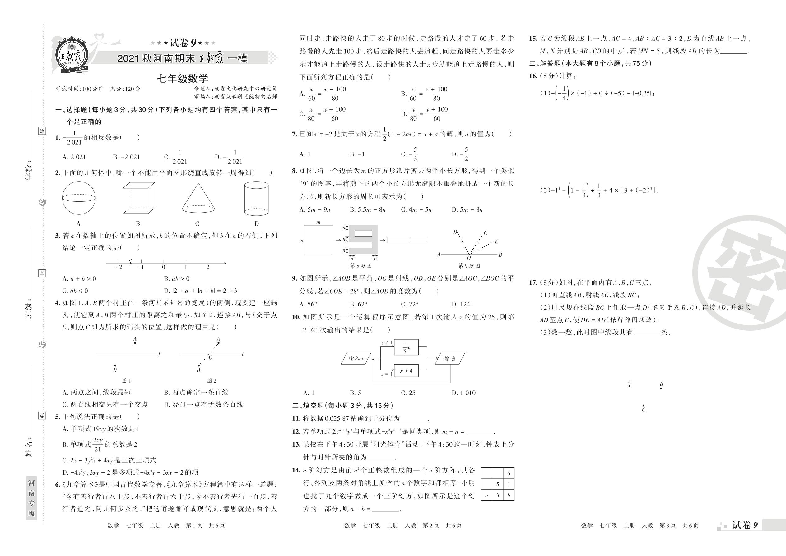 王朝霞期末模拟卷七年级上册数学(人教版)_R211225135650908【9】