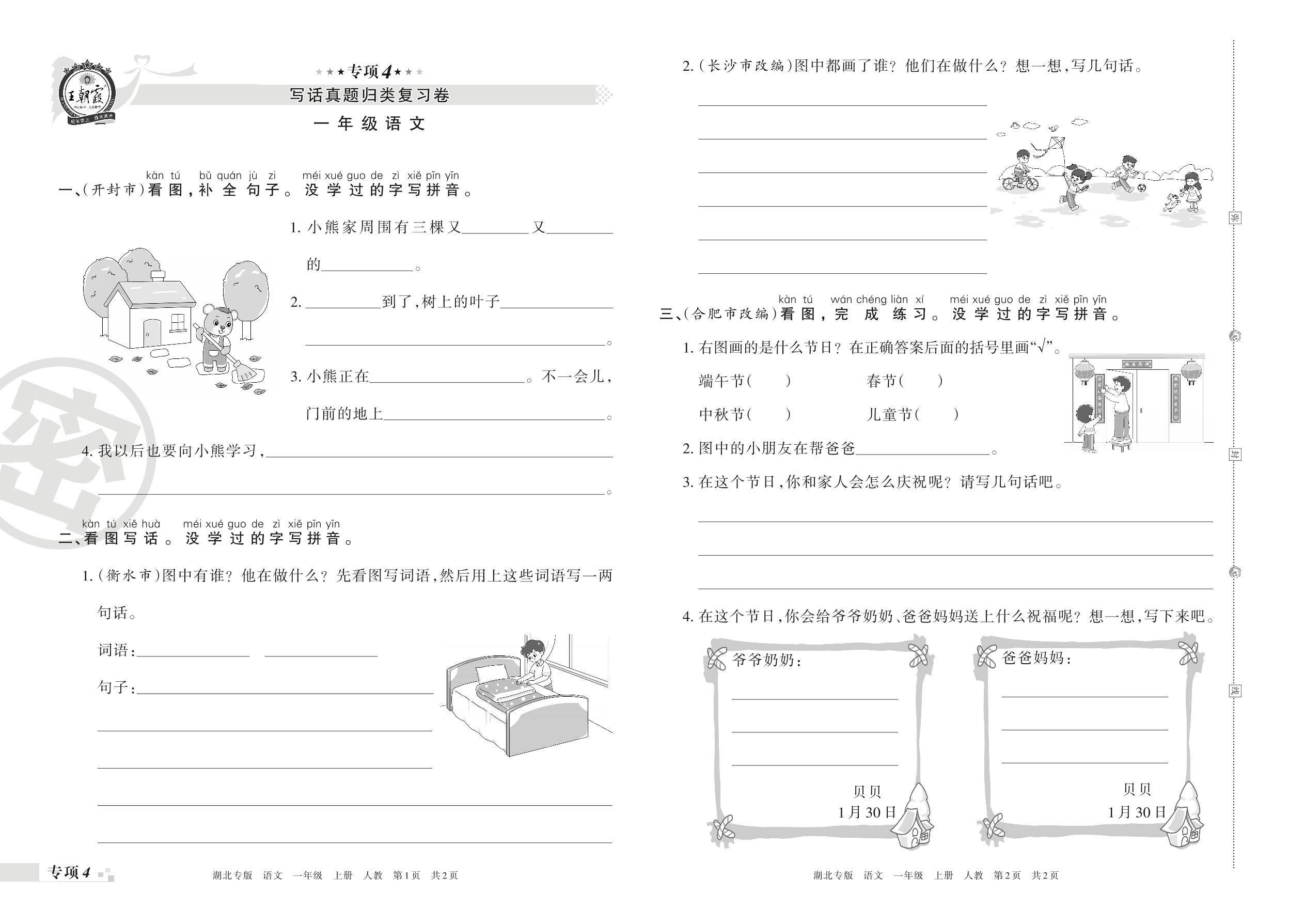 王朝霞期末专项卷——写话真题归类复习卷一年级上册语文(人教版)_R211225140115312【4】