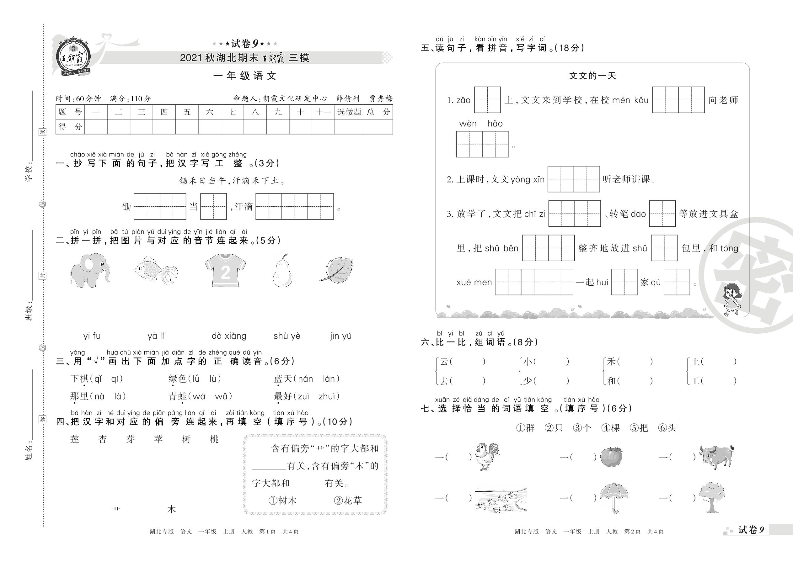 王朝霞期末模拟卷一年级上册语文(人教版)_R211225140115451【9】