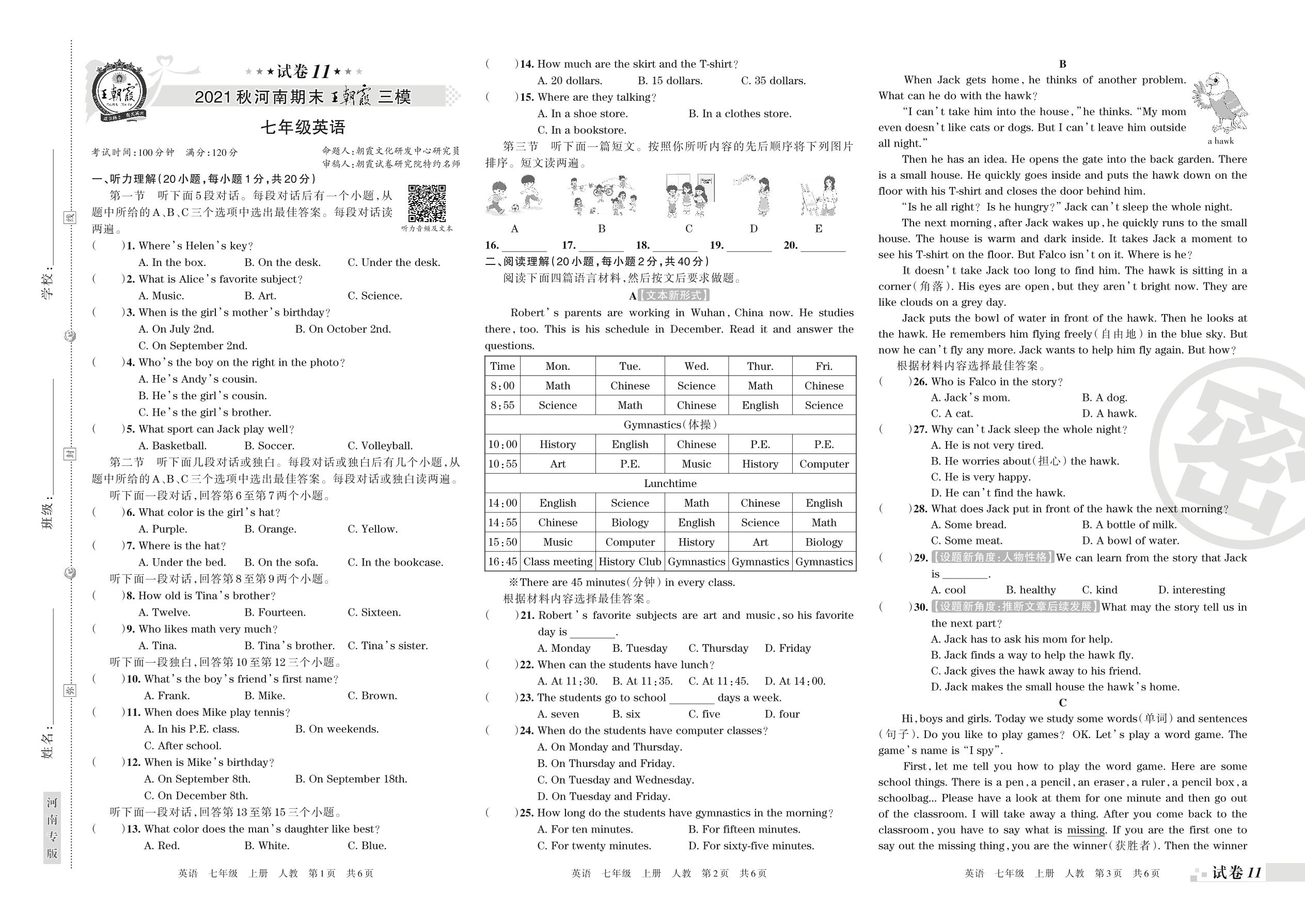 王朝霞期末模拟卷七年级上册英语(人教版)_R211225140133032【11】