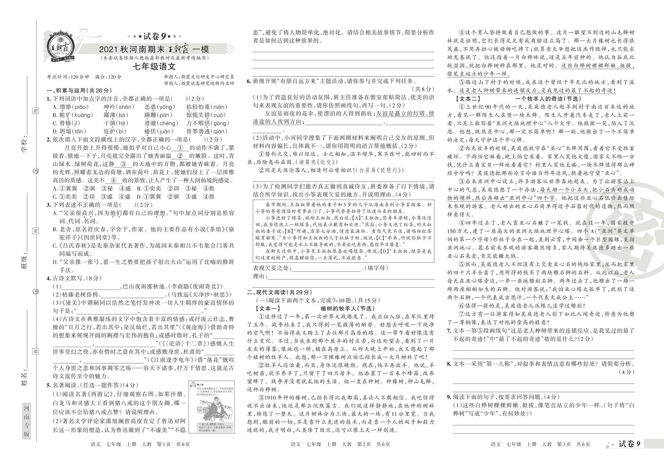 王朝霞期末模拟卷七年级上册语文(人教版)_R211225140612823【9】