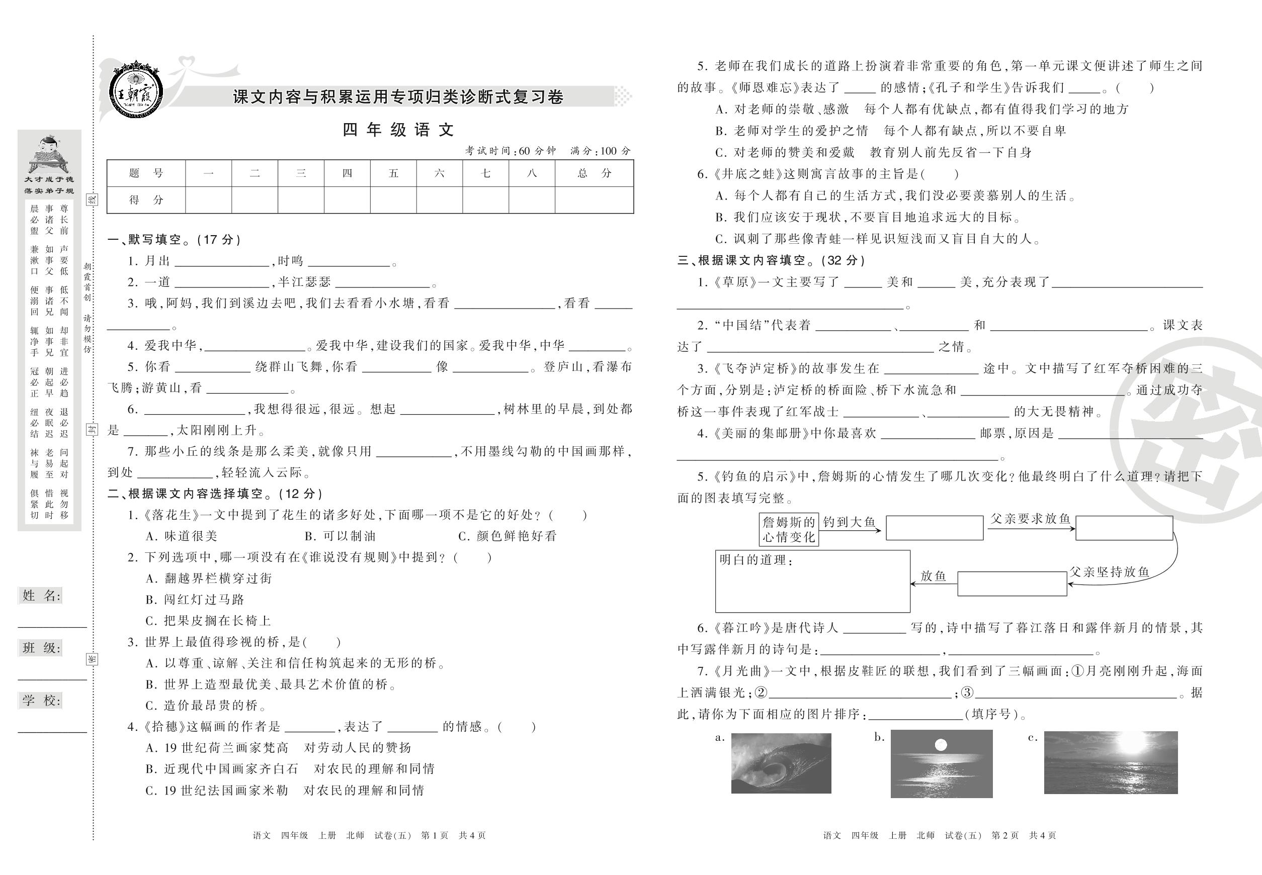 王朝霞期末专项卷四年级上册语文(北师版)【5】