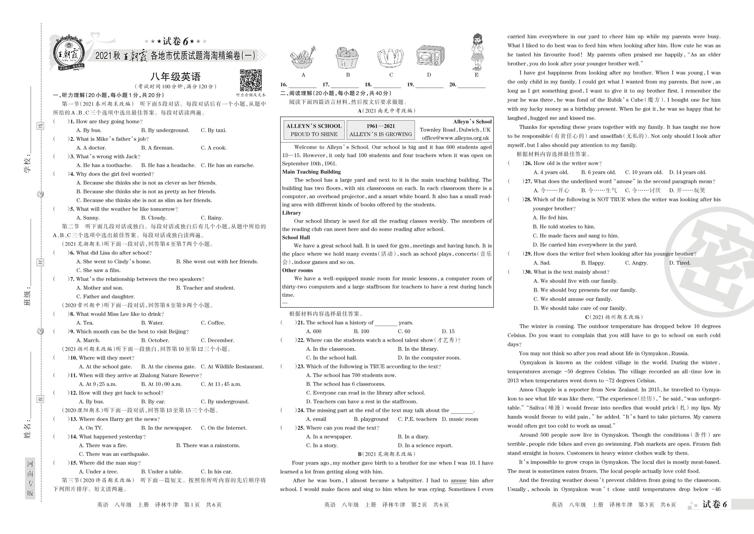 2021秋王朝霞各地市优质试题海淘精编卷(一)八年级英语(译林牛津版)【6】