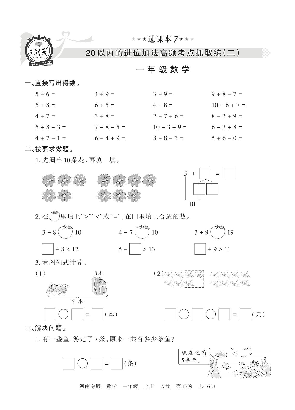 王朝霞期末过课本——20以内的进位加法高频考点抓取练(二)一年级上册数学(人教版)_R211225152756697【7】
