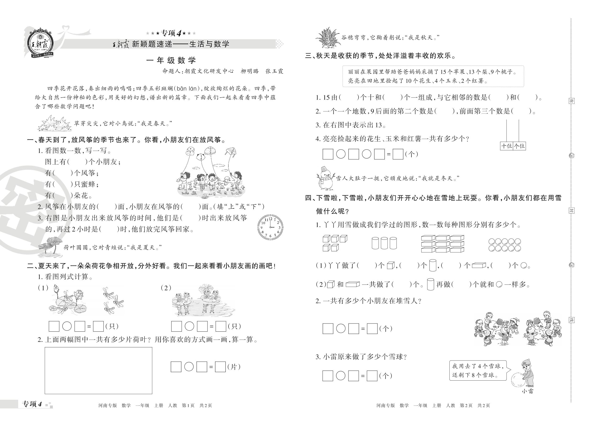 王朝霞期末专项卷——新颖题速递:生活与数学一年级上册数学(人教版)_R211225152756697【4】