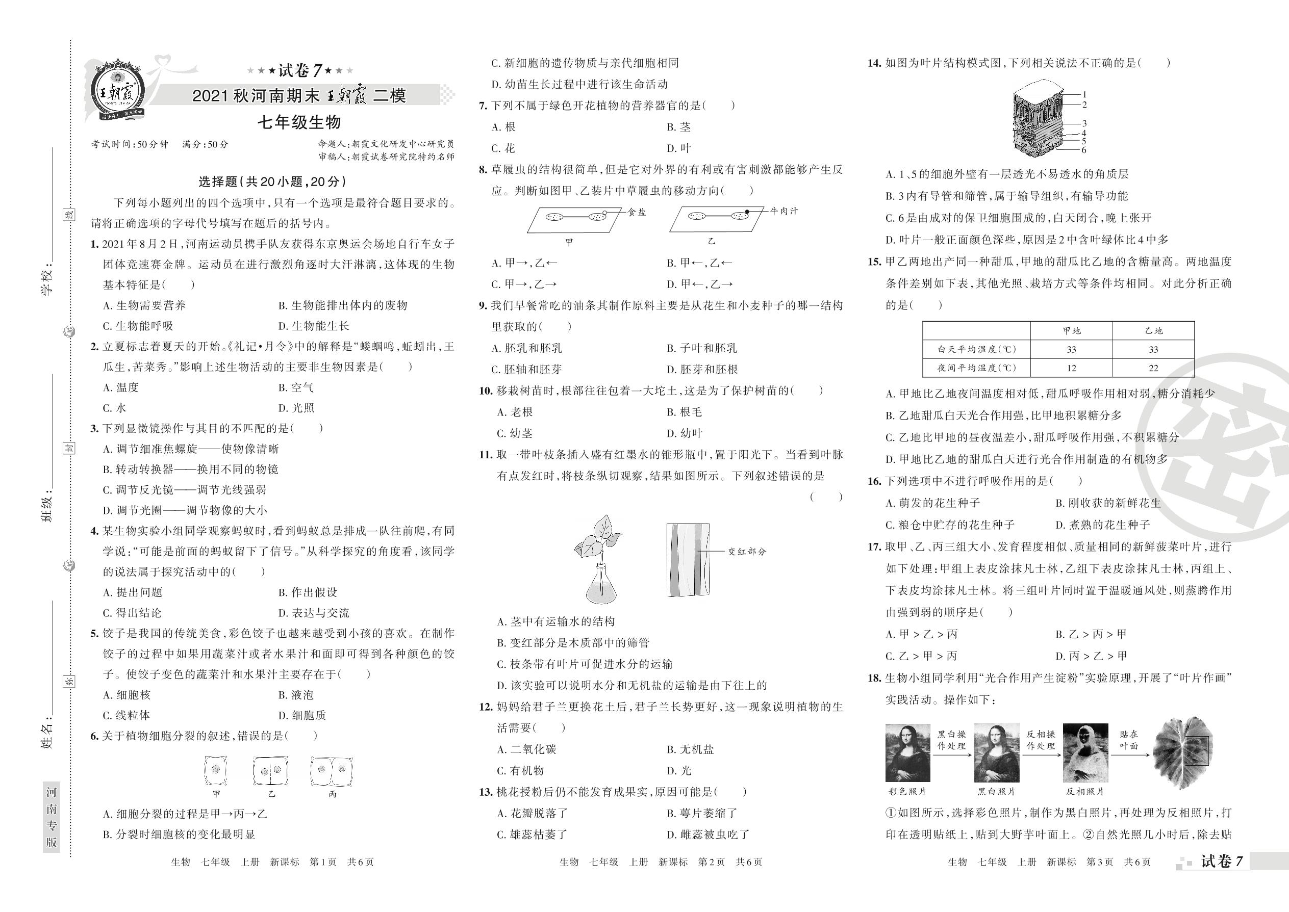 王朝霞期末模拟卷七年级上册生物(新课标版)【7】