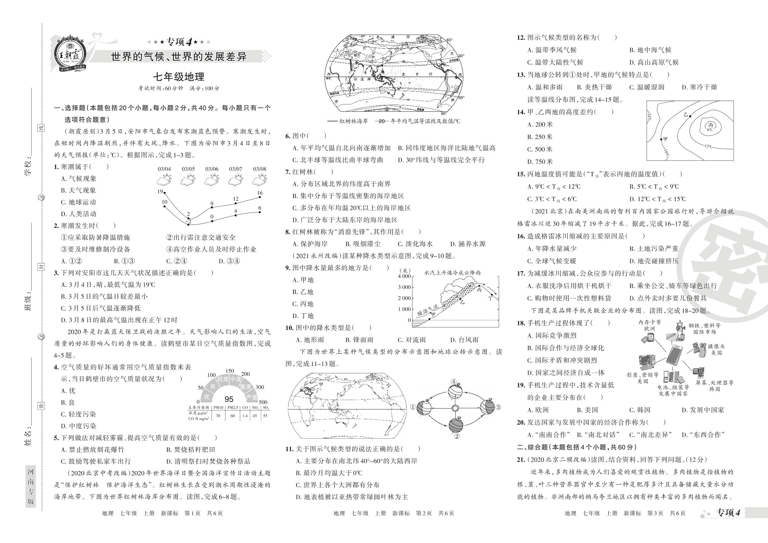王朝霞期末专项卷——世界的气候、世界的发展差异七年级上册地理(新课标版)【4】