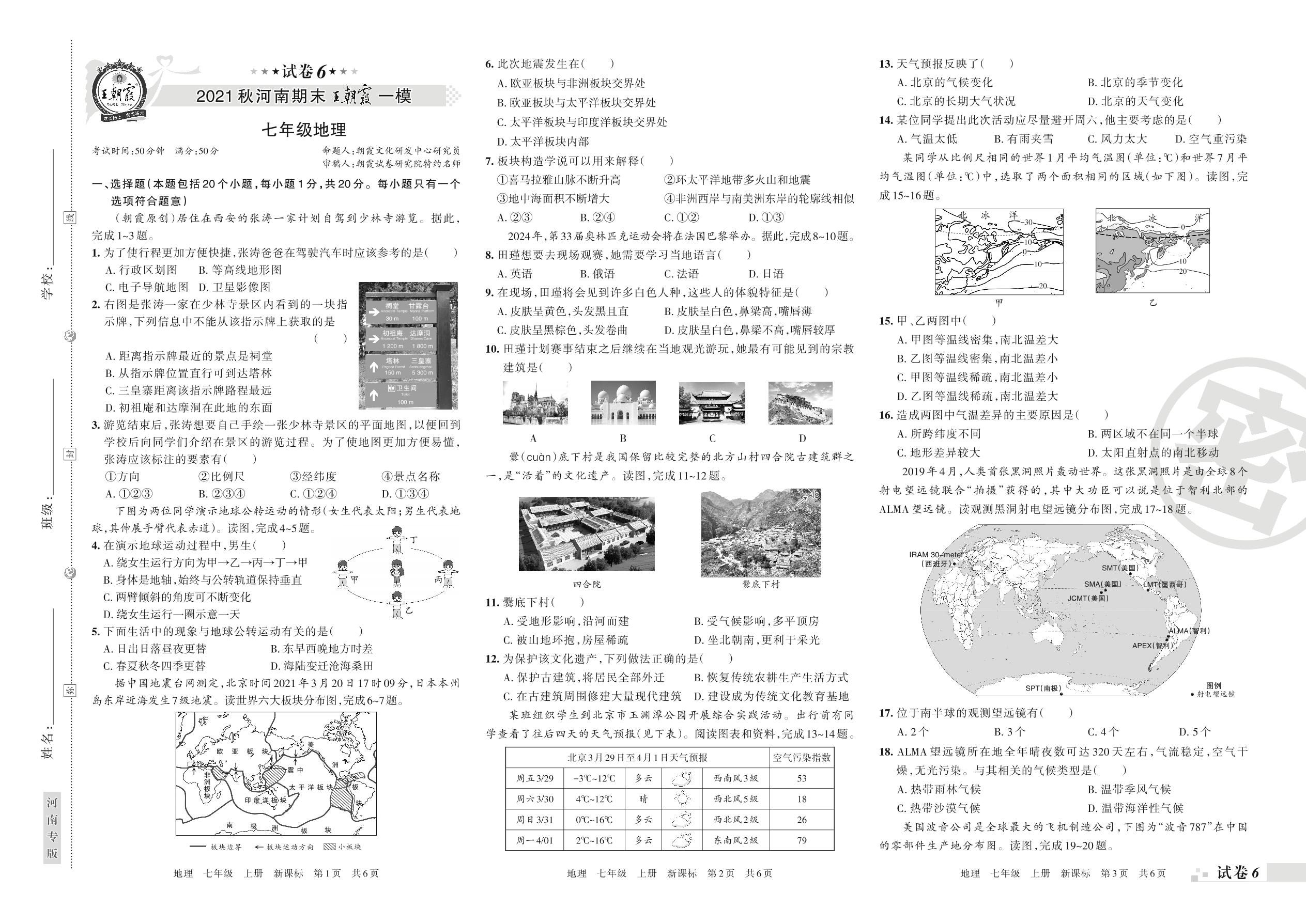 王朝霞期末模拟卷七年级上册地理(新课标版)【6】