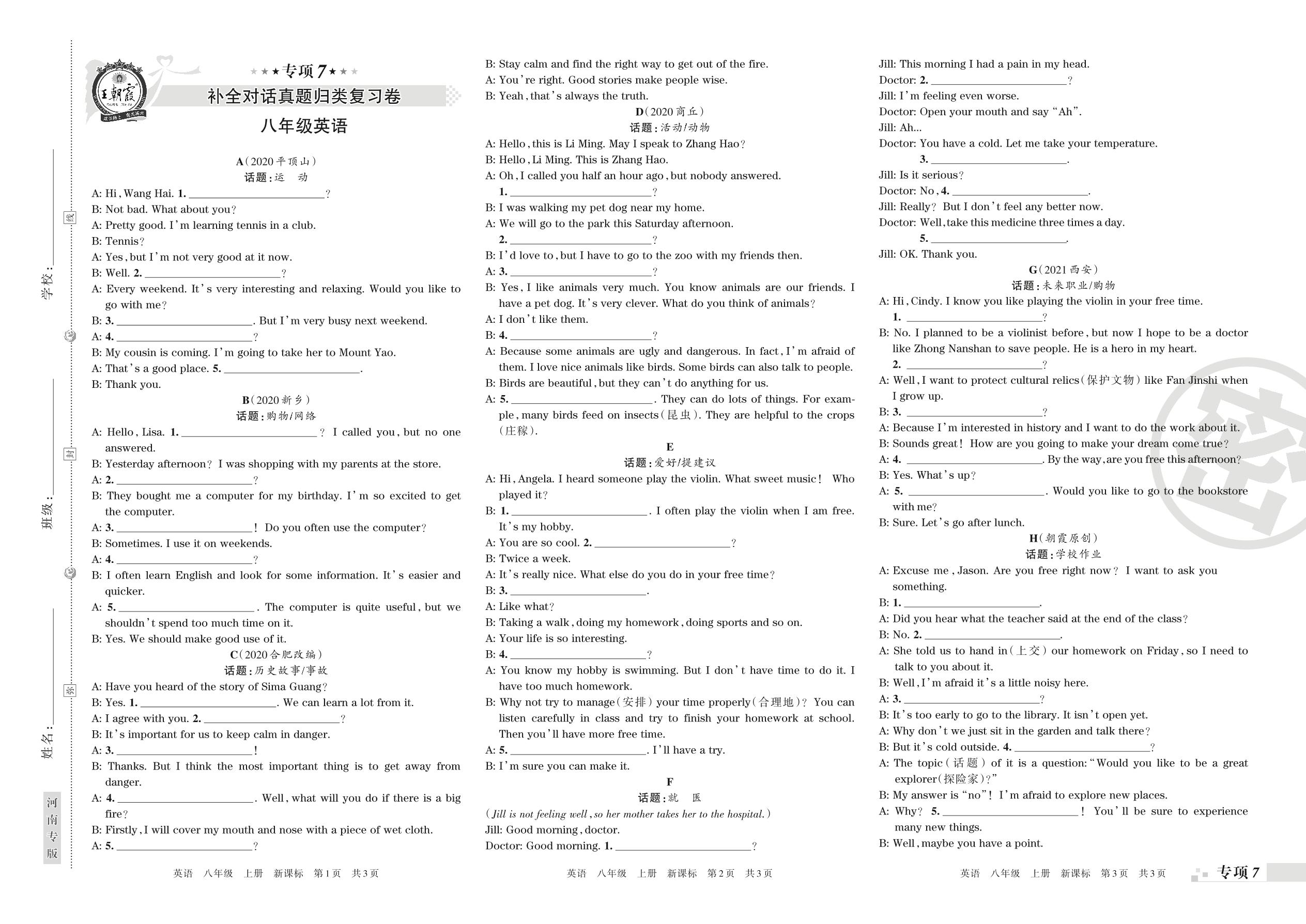 王朝霞期末专项卷——补全对话真题归类复习卷八年级上册英语(新课标版)_R211225144028415【7】