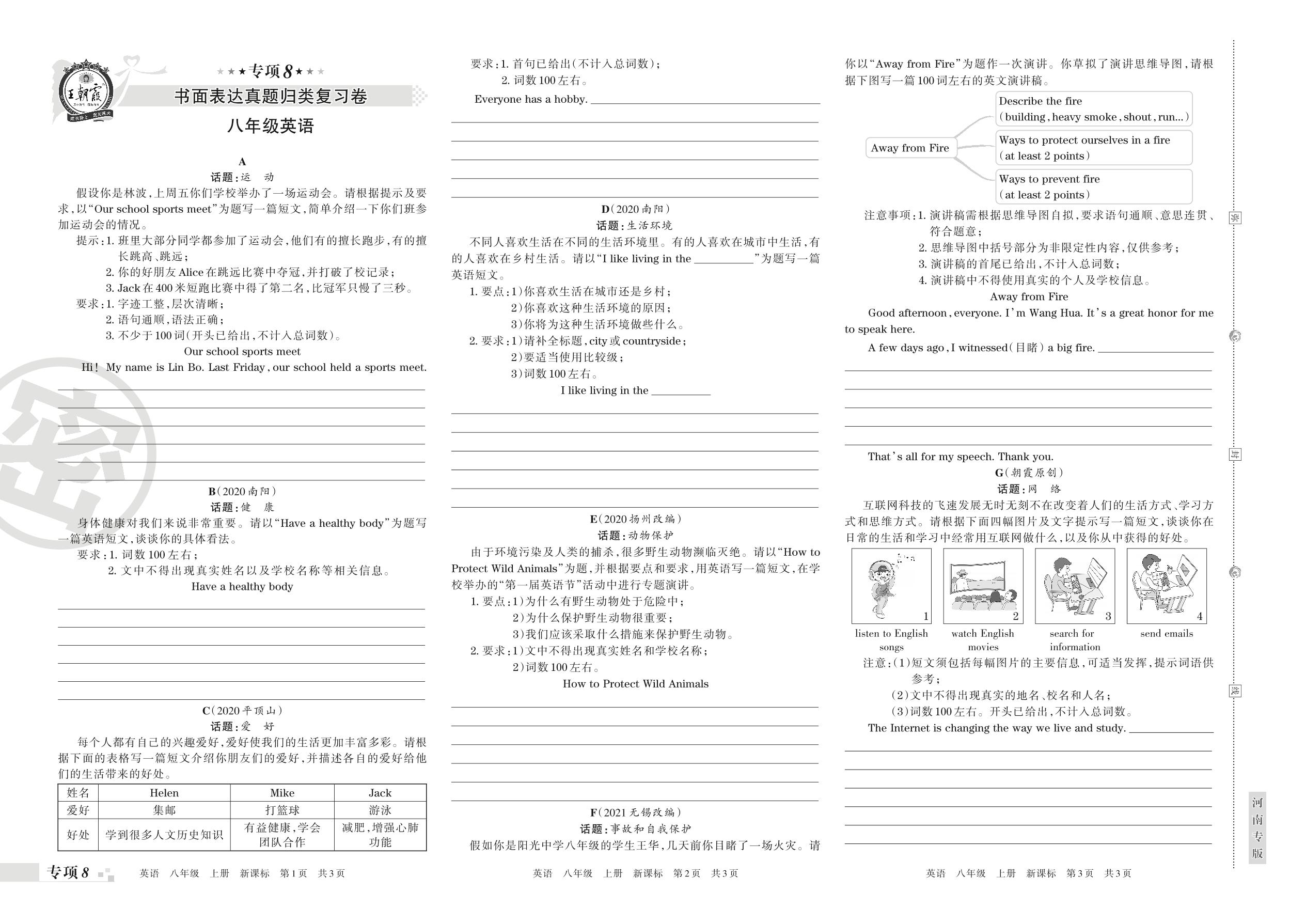 王朝霞期末专项卷——书面表达真题归类复习卷八年级上册英语(新课标版)_R211225144028212【8】