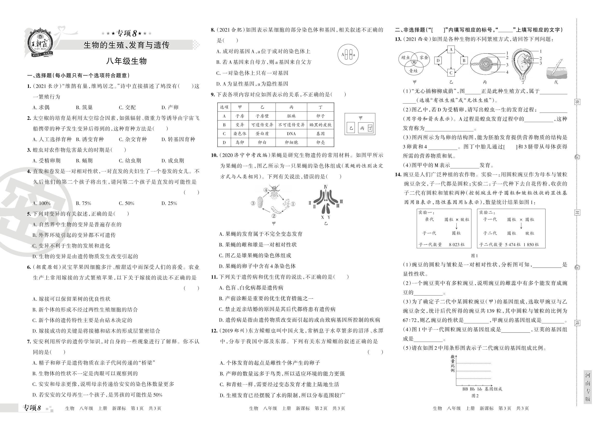 王朝霞期末专项卷——生物的生殖、发育与遗传八年级上册生物(新课标版)【8】