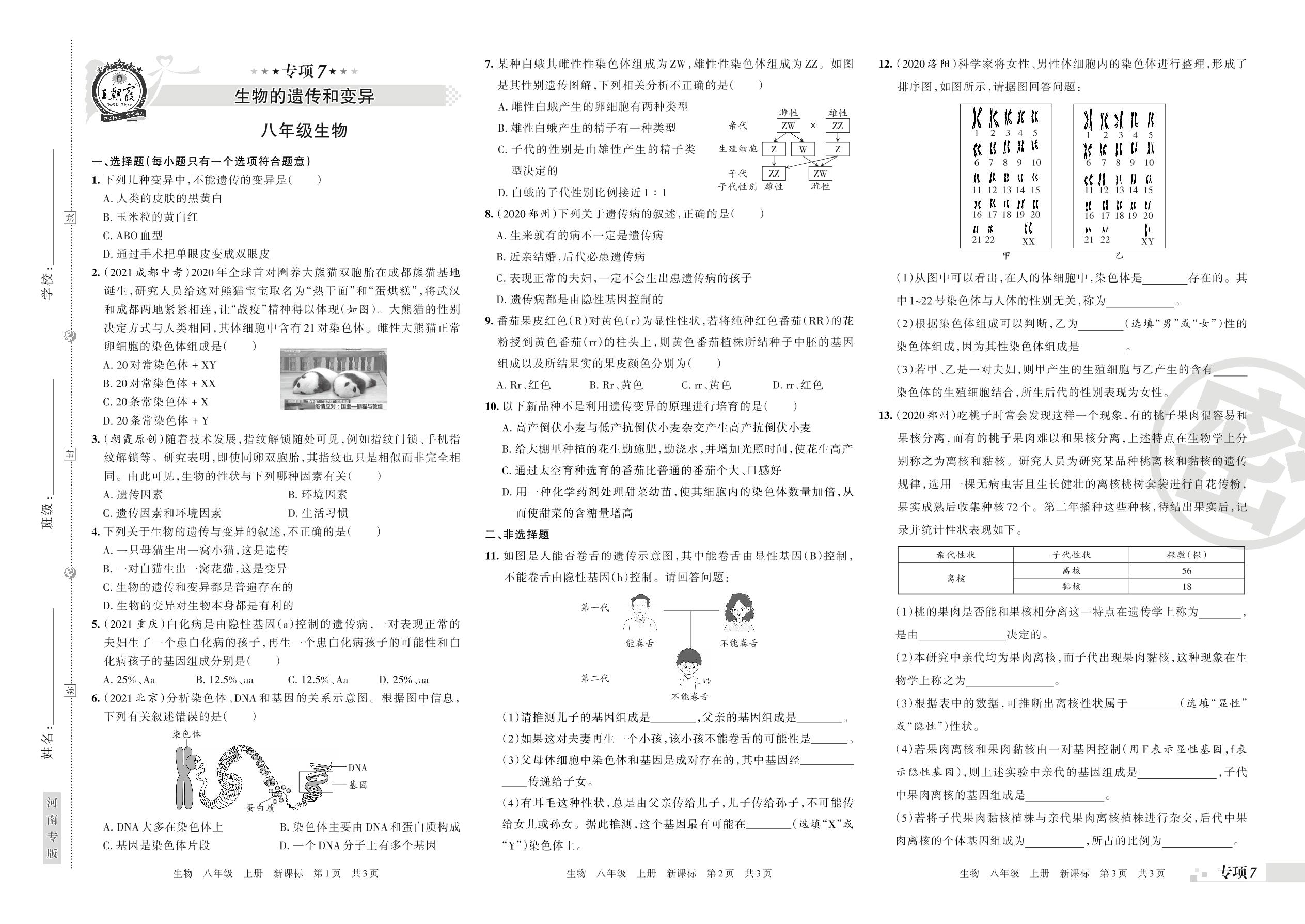 王朝霞期末专项卷——生物的遗传和变异八年级上册生物(新课标版)【7】