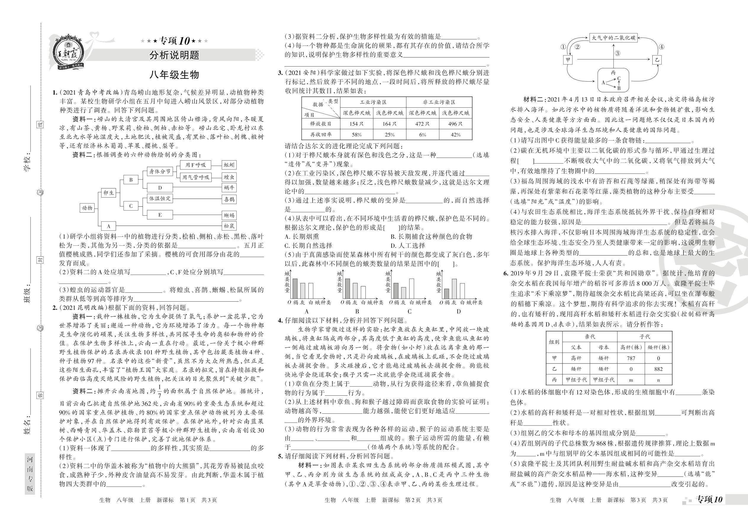 王朝霞期末专项卷——分析说明题八年级上册生物(新课标版)【10】