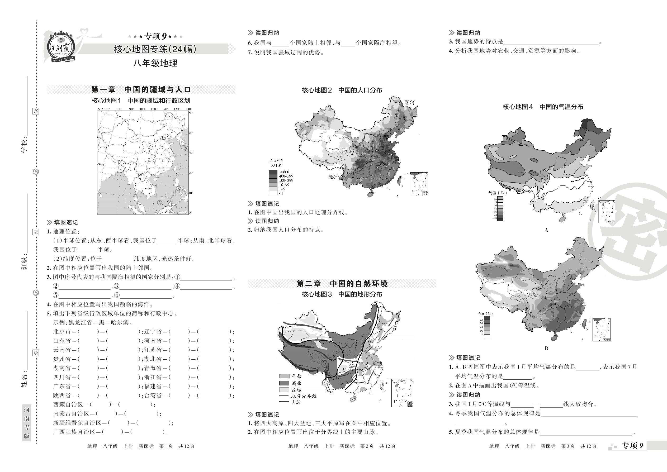 王朝霞期末专项卷——核心地图专练(24幅)八年级上册地理(新课标版)【9】