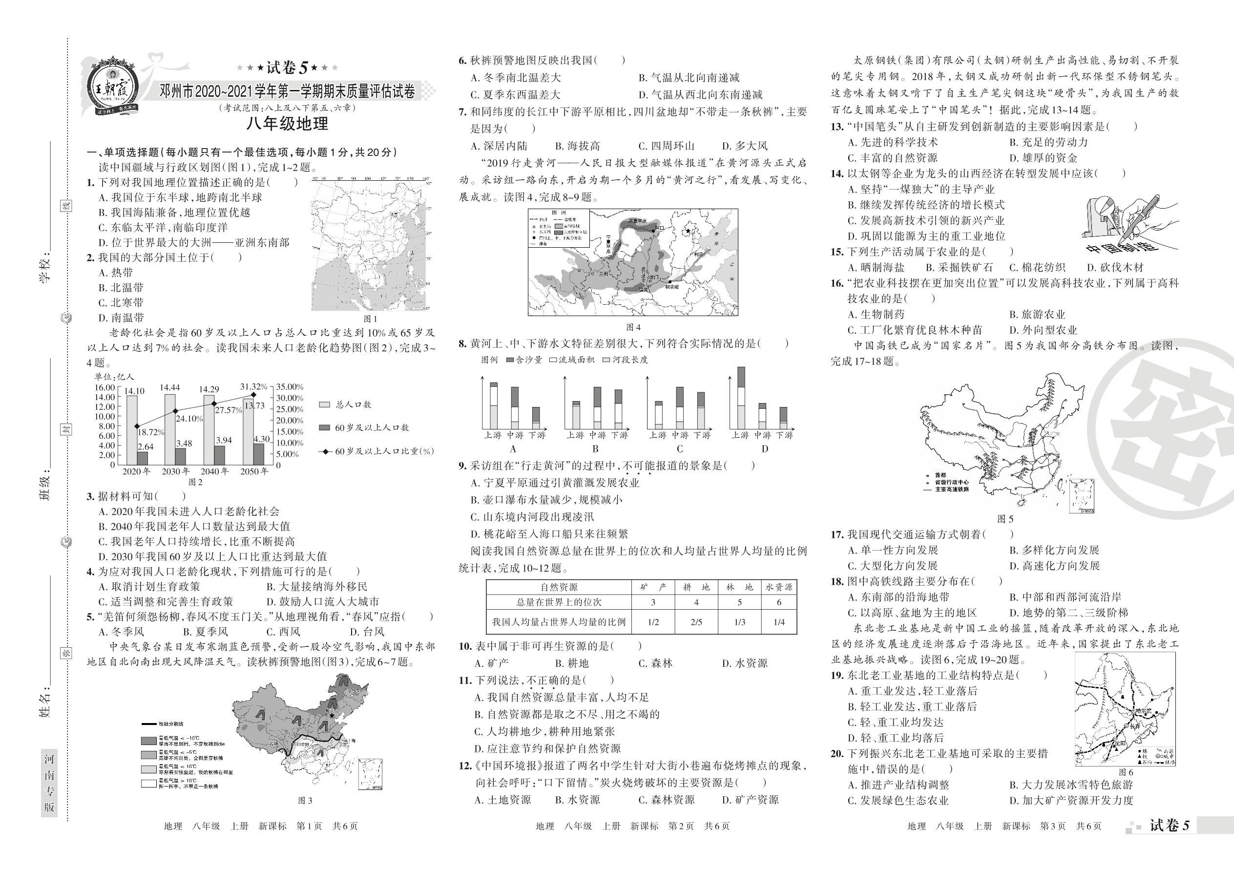 邓州市2020~2021学年第一学期期末质量评估试卷八年级地理(新课标版)【5】