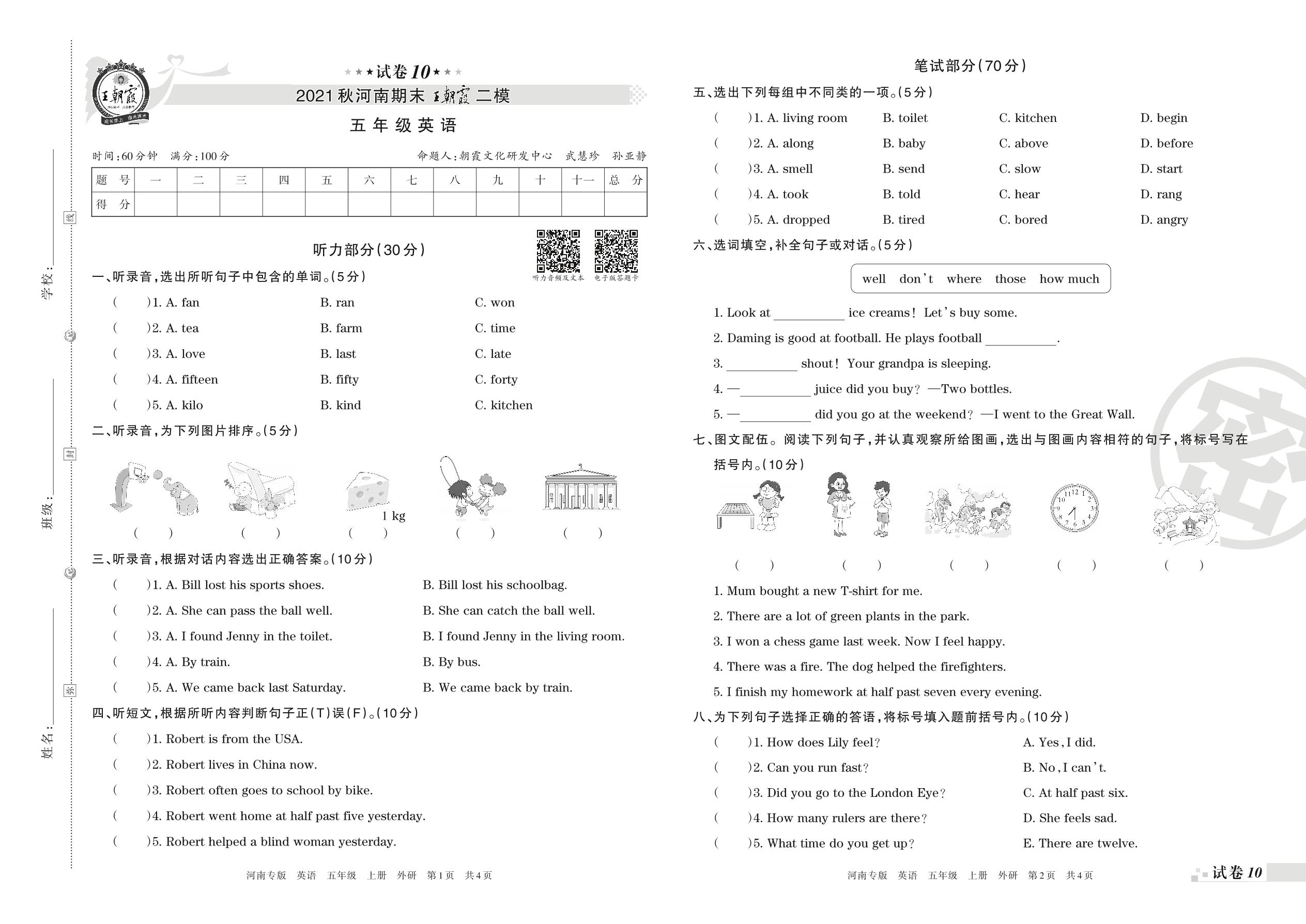 王朝霞期末模拟卷五年级上册英语(外研版)_R211225145533898【10】