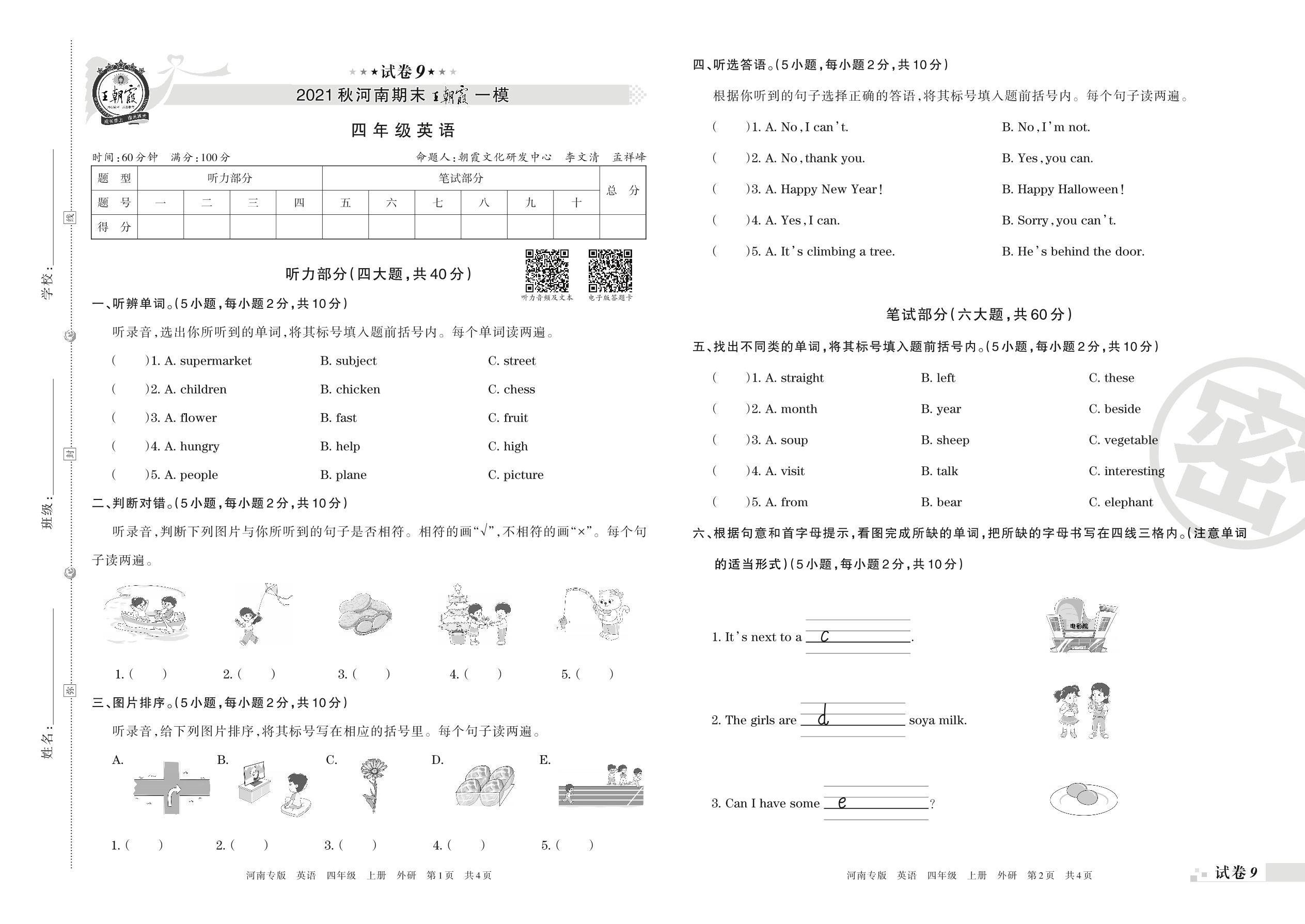 王朝霞期末模拟卷四年级上册英语(外研版)_R211225150143652【9】