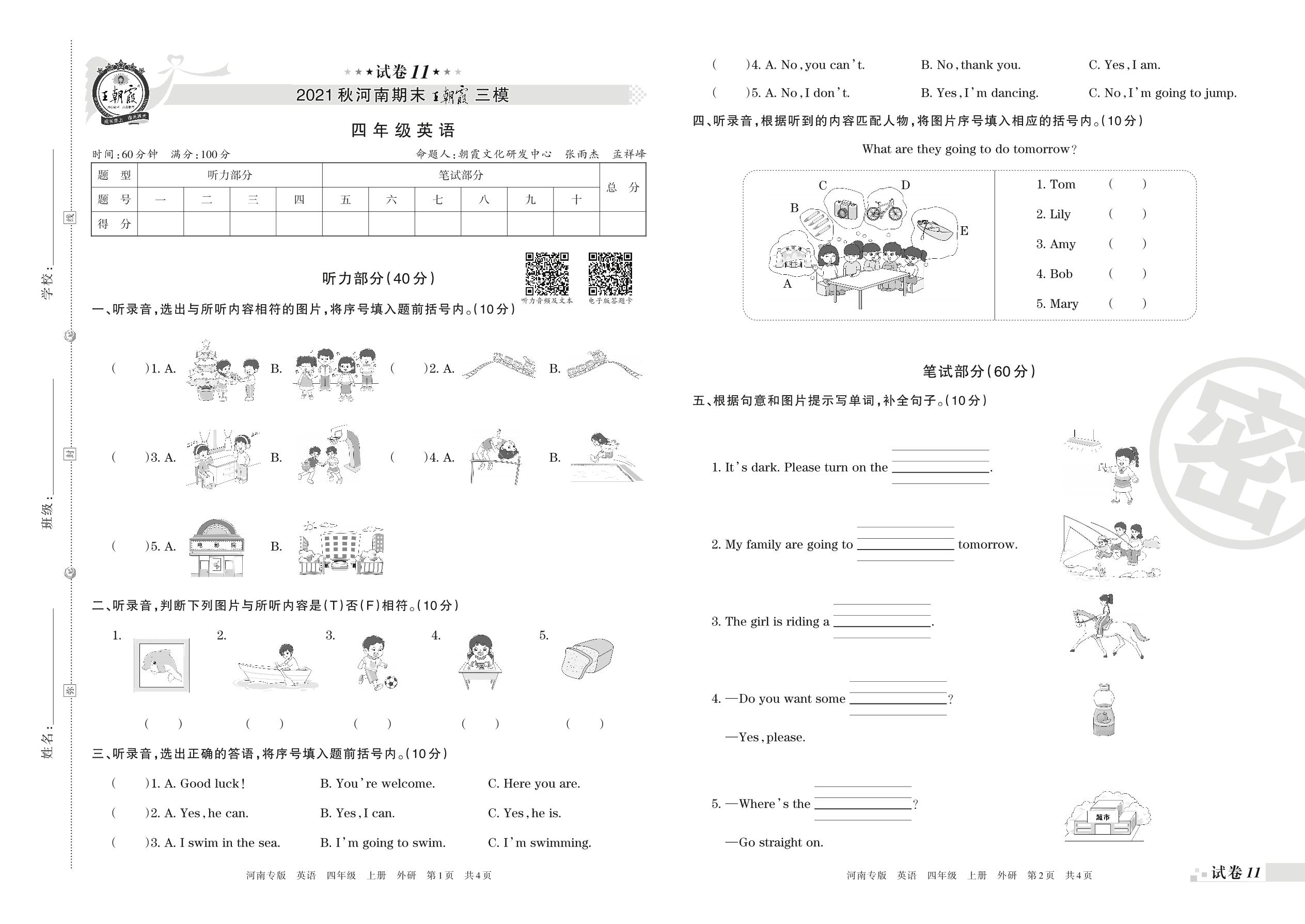 王朝霞期末模拟卷四年级上册英语(外研版)【11】