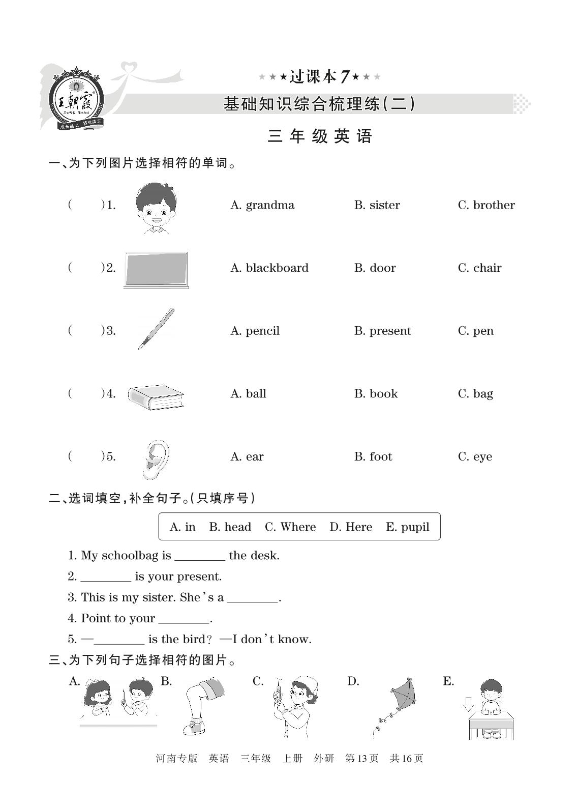 王朝霞期末过课本——基础知识综合梳理练(二)三年级上册英语(外研版)_R211225150822076【7】