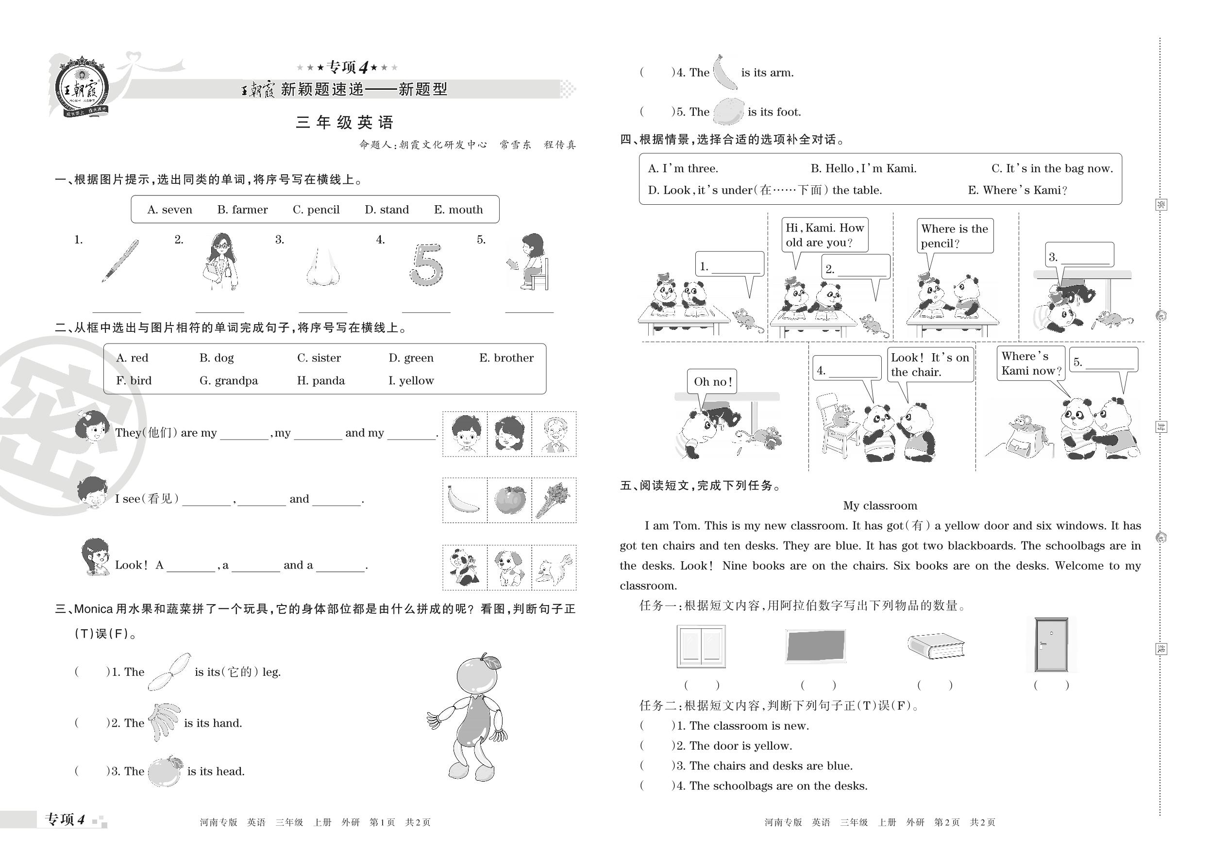 王朝霞期末专项卷——新颖题速递:新题型三年级上册英语(外研版)_R211225150822365【4】