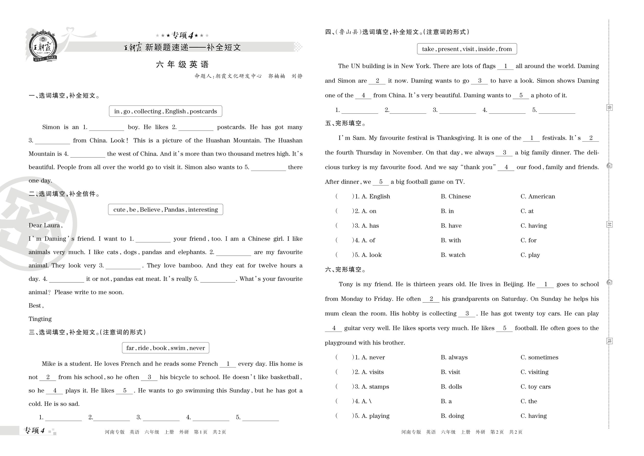 王朝霞期末专项卷——新颖题速递:补全短文六年级上册英语(外研版)_R211225151327241【4】