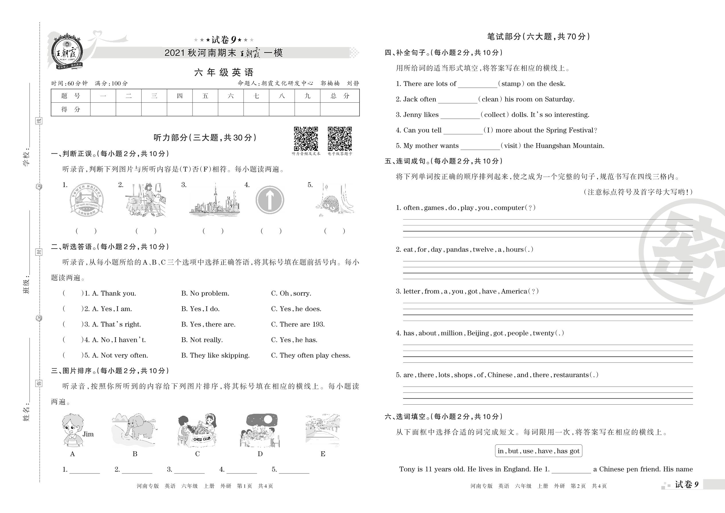 王朝霞期末模拟卷六年级上册英语(外研版)_R211225151328776【9】