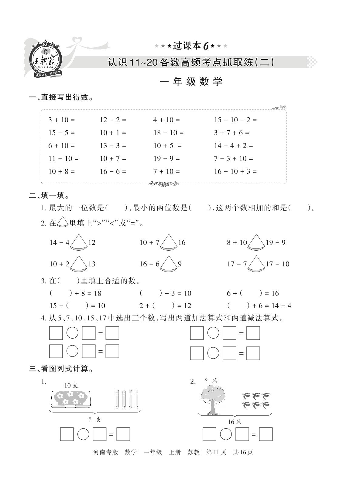 王朝霞期末过课本——认识11~20各数高频考点抓取练(二)一年级上册数学(苏教版)_R211225152839253【6】