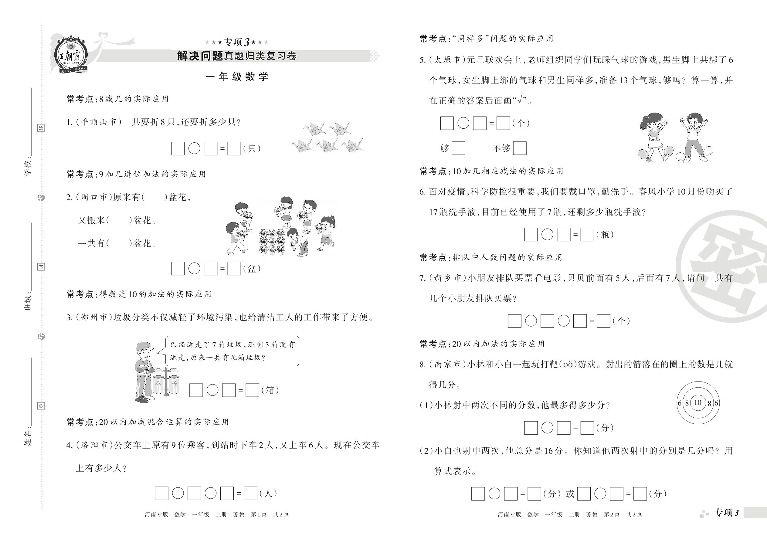 王朝霞期末专项卷——解决问题真题归类复习卷一年级上册数学(苏教版)_R211225152839303【3】