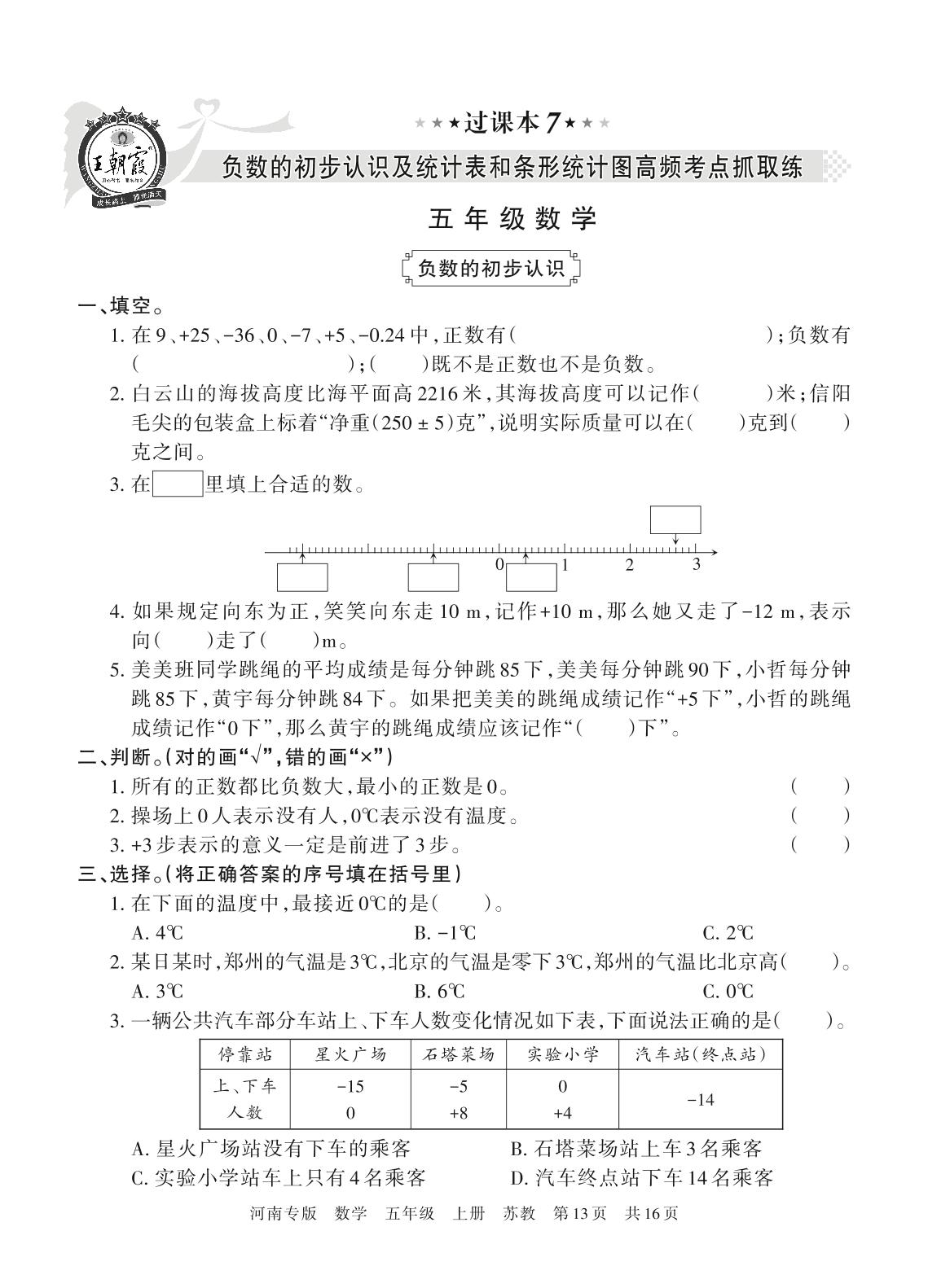 王朝霞期末过课本——负数的初步认识及统计表和条形统计图高频考点抓取练五年级上册数学(苏教版)_R211225153401958【7】