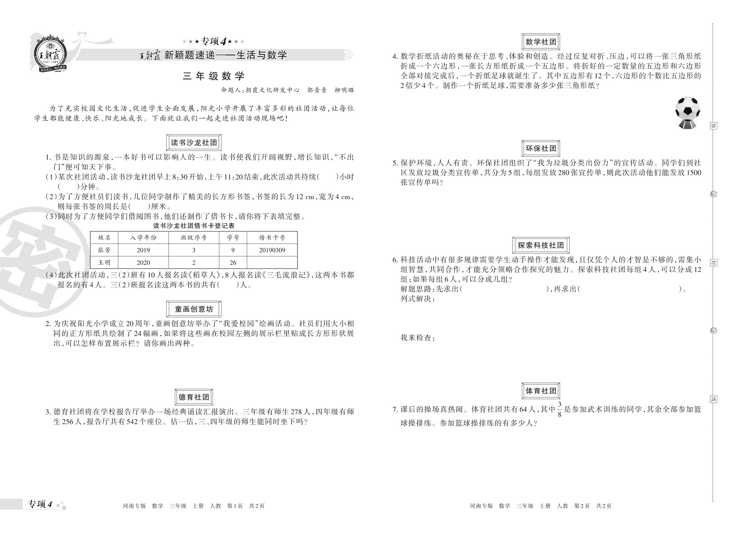 王朝霞期末专项卷——新颖题速递:生活与数学三年级上册数学(人教版)_R211225153655060【4】