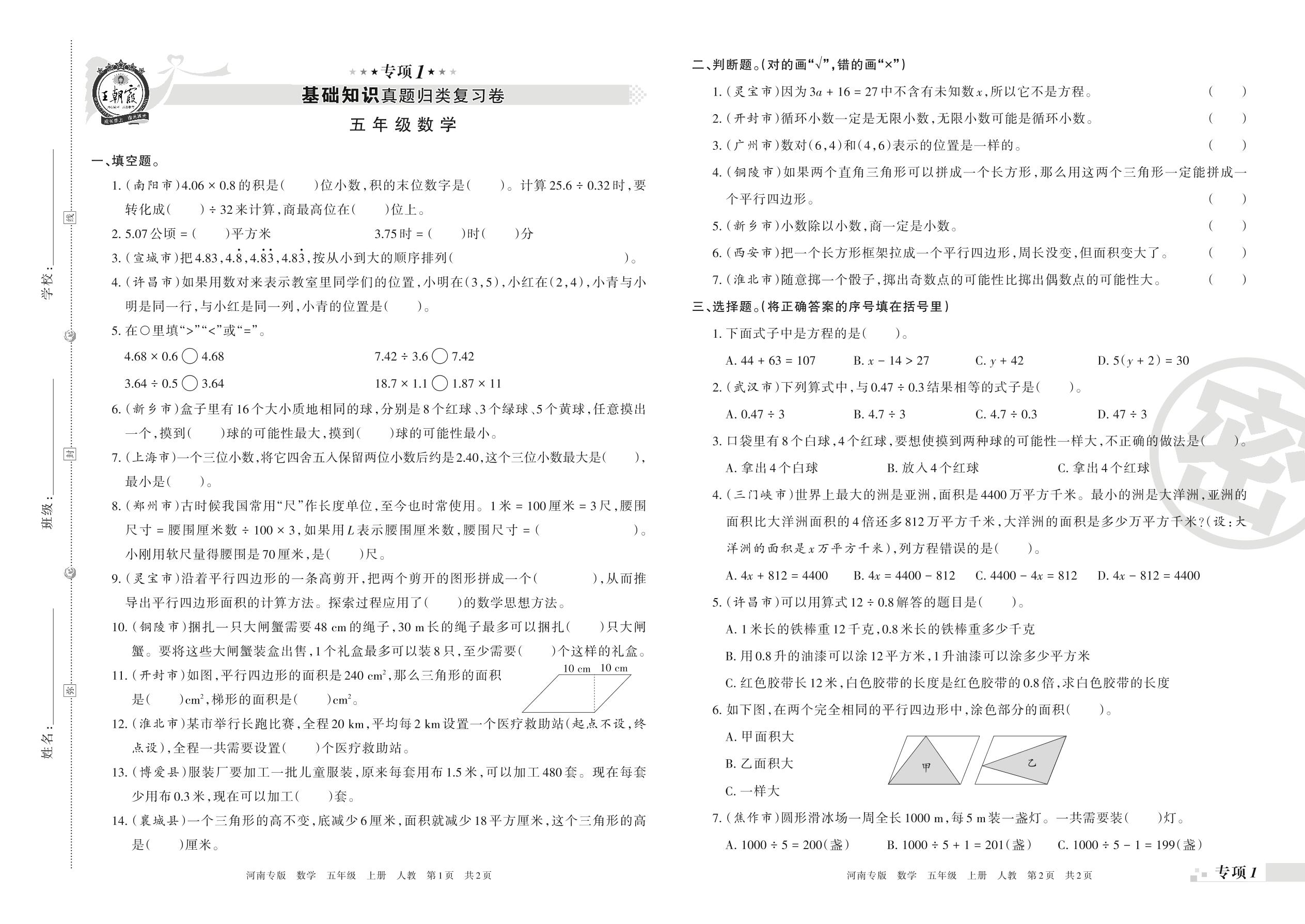王朝霞期末专项卷——基础知识真题归类复习卷五年级上册数学(人教版)_R211225154624245【1】