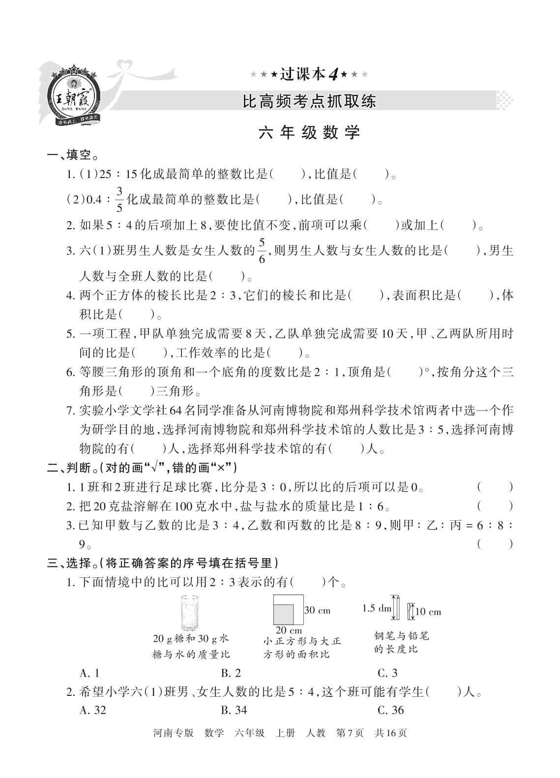 王朝霞期末过课本——比高频考点抓取练六年级上册数学(人教版)_R211225155106050【4】