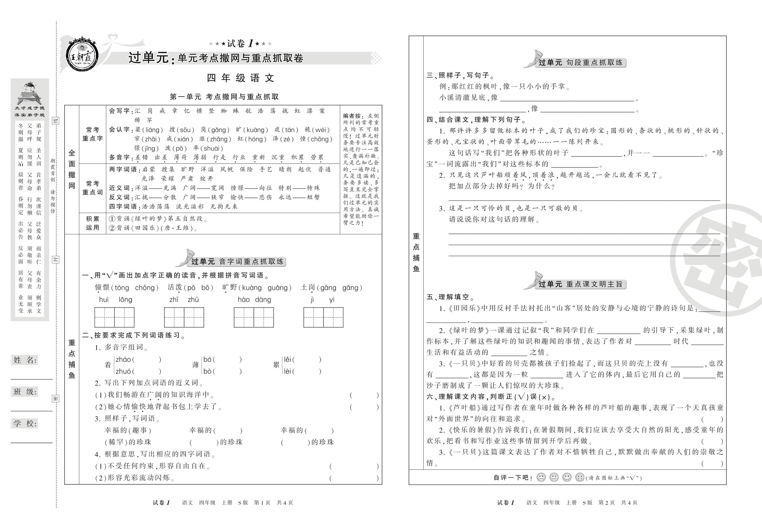 王朝霞期末过单元四年级上册语文(S版)【1】